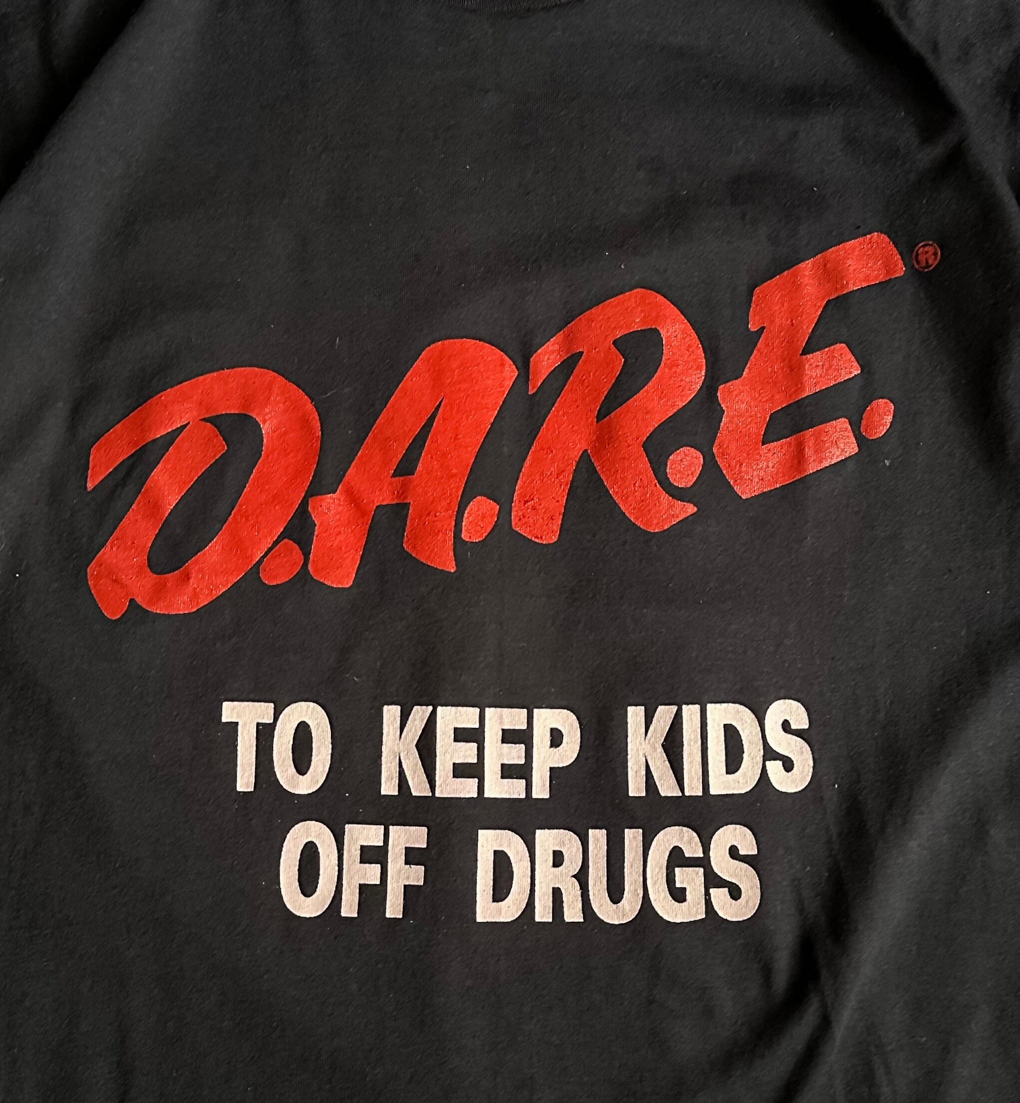 D.A.R.E.とはDRUG ABUSE RESISTANCE EDUCATIONの略で、子ども達を薬物乱用から守る教育をするアメリカの団体がチャリティーの為に作ったTシャツ。