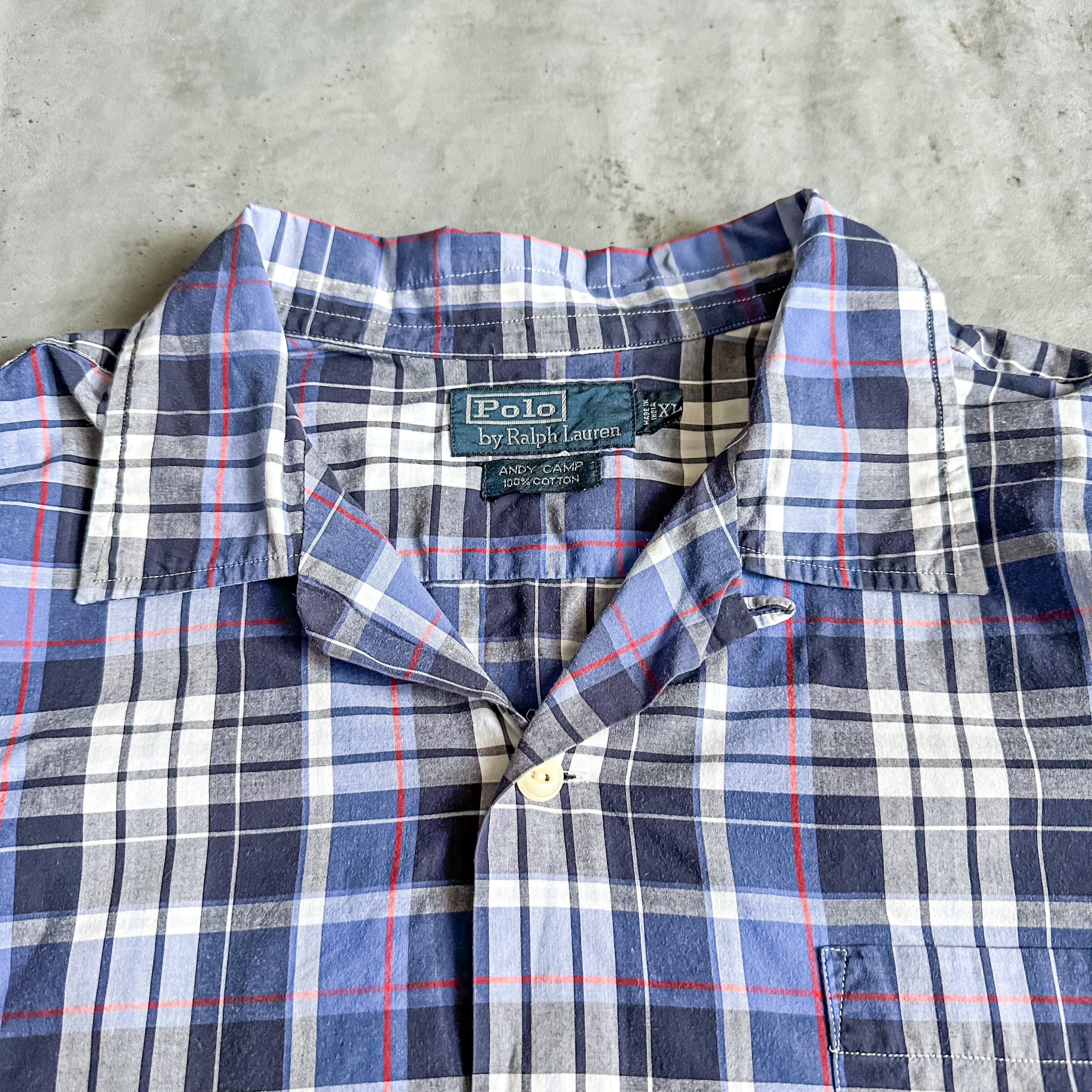 1990's Polo Ralph Lauren "ANDY CAMP" plaid pattern open collar S/S shirt