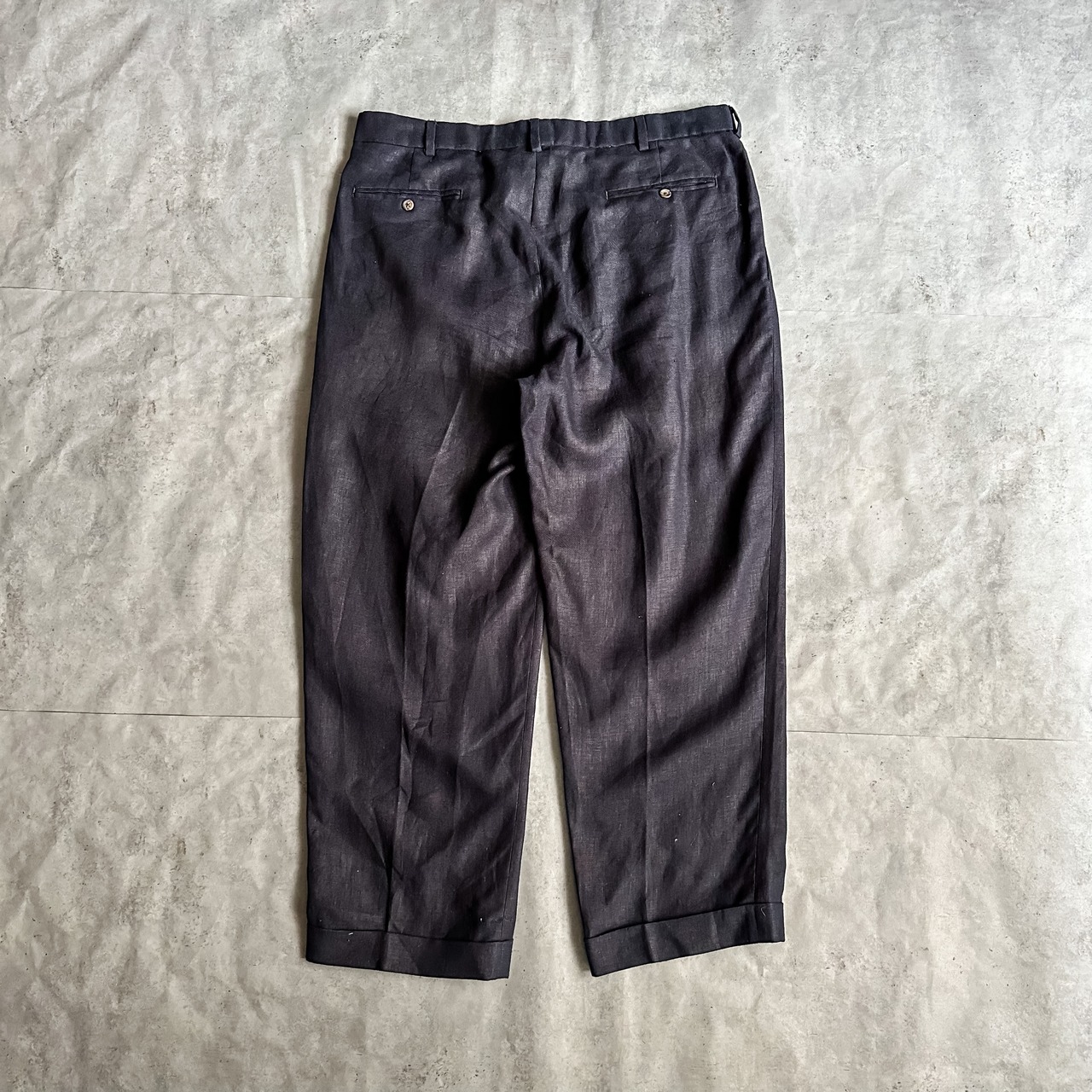 1990's~ "Polo Ralph Lauren" dark navy two tuck linen slacks pants