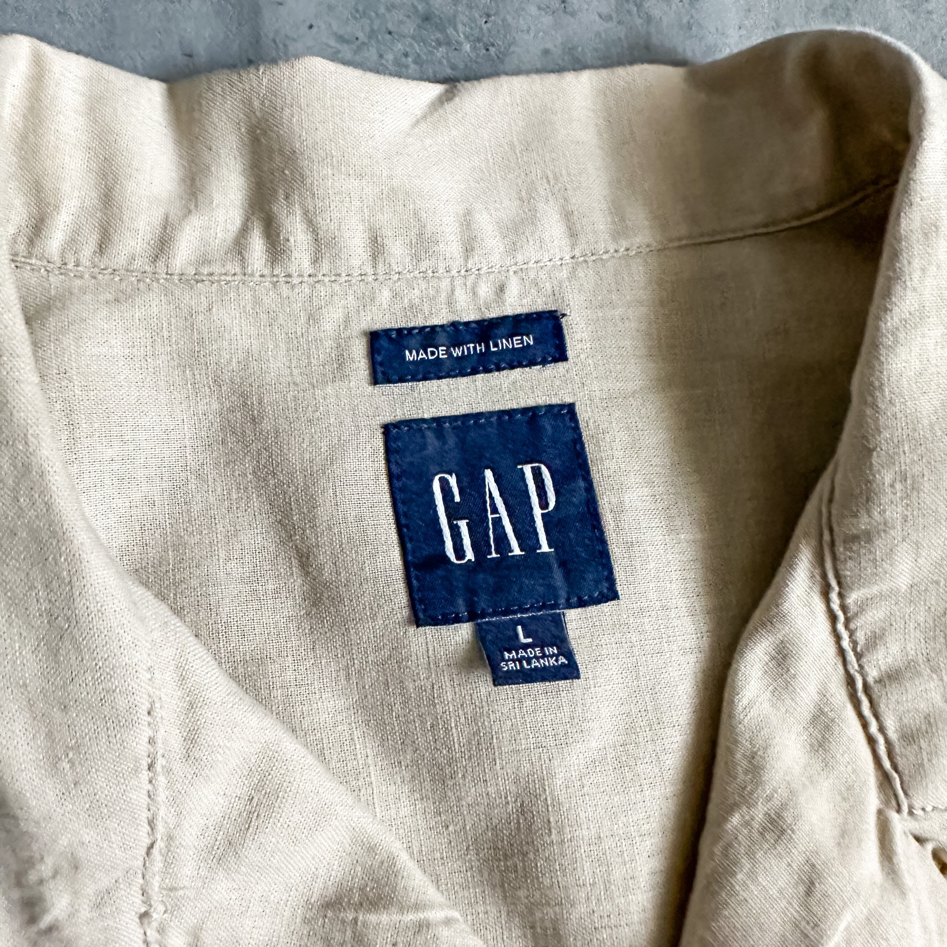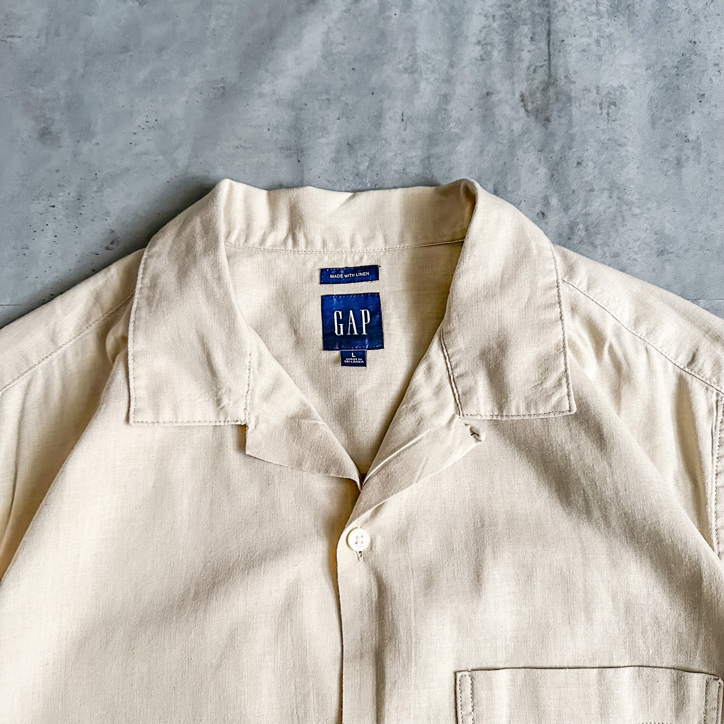 2000's "GAP" ecru color open collar linen cotton s/s shirt