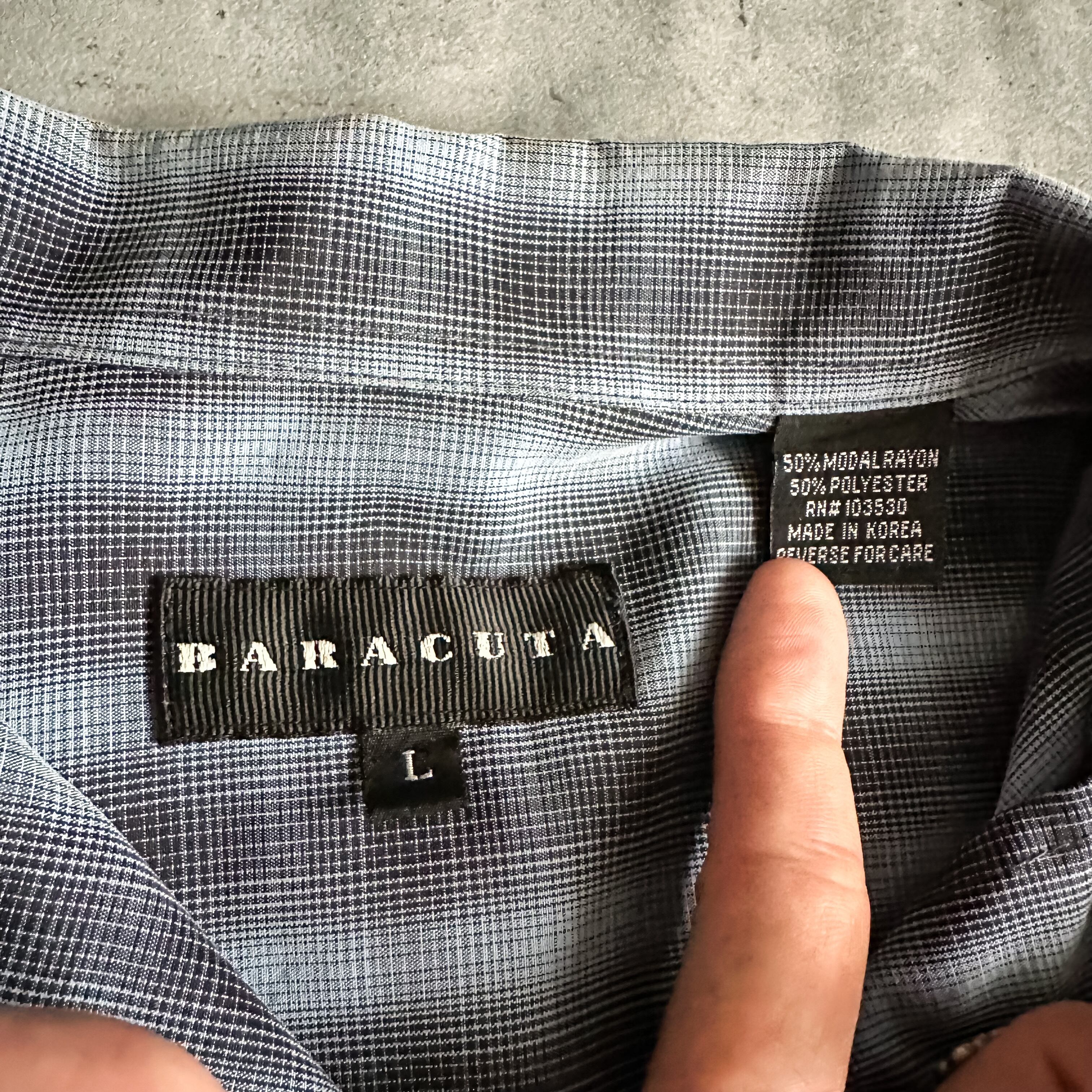 1990's~ "BARACUTA" shadow check open collar s/s shirt