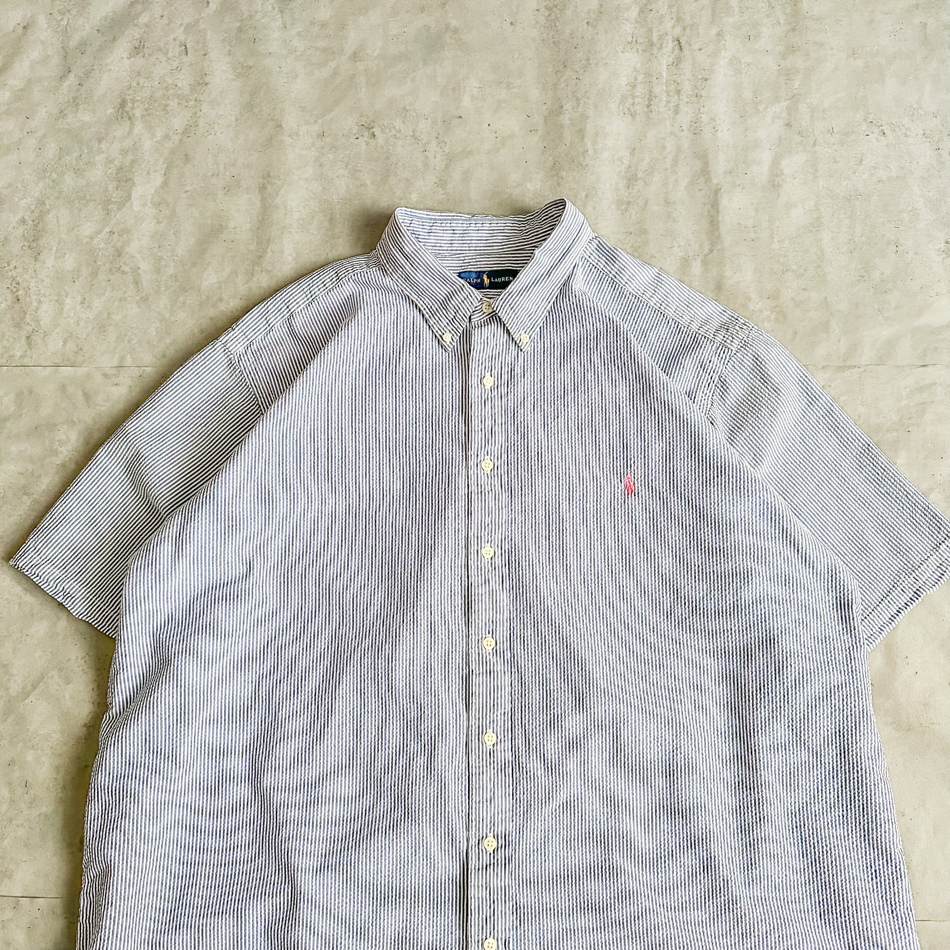 2000's Ralph Lauren B/D seersucker stripe pattern cotton shirt