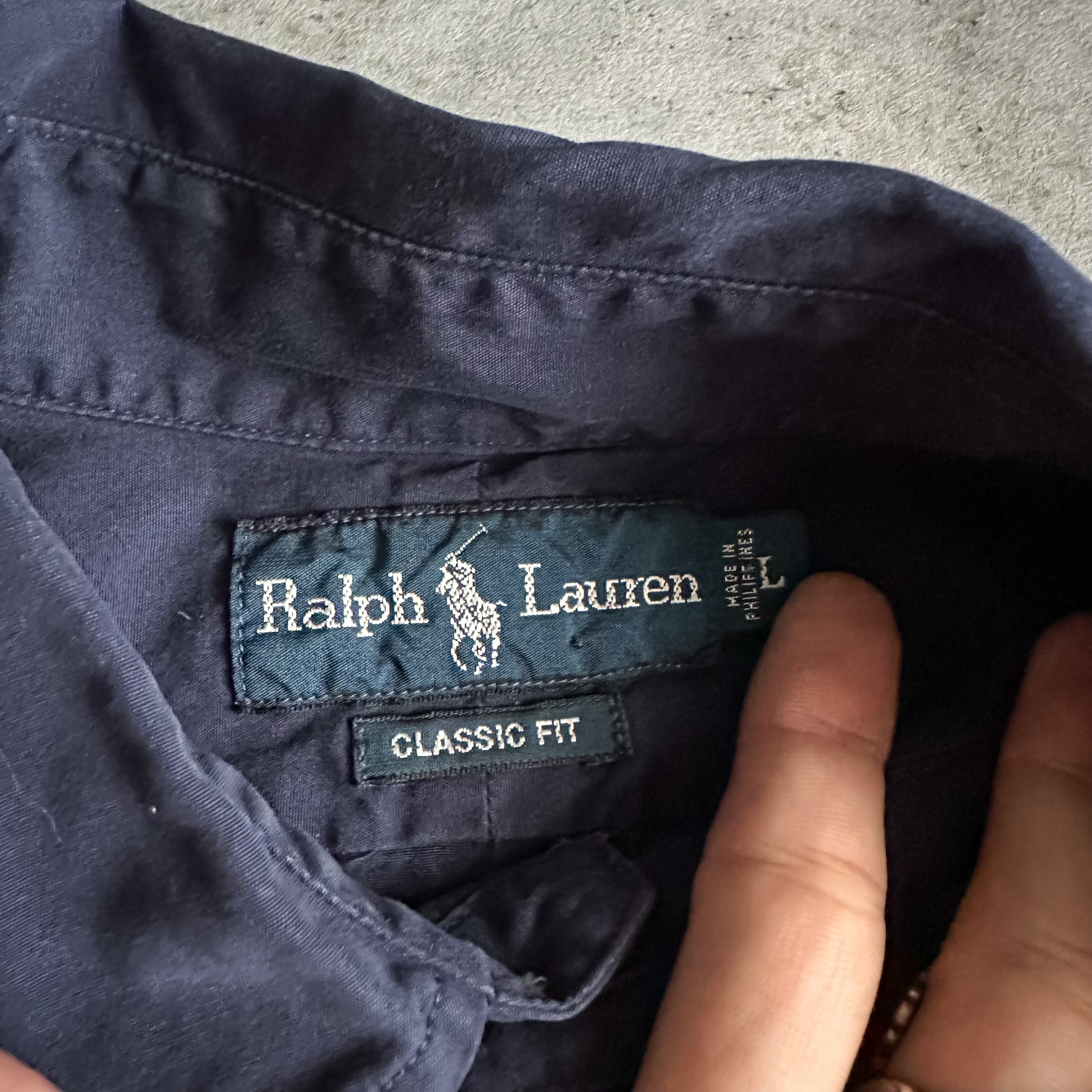 1990's~ Ralph Lauren navy B/D cotton s/s shirt