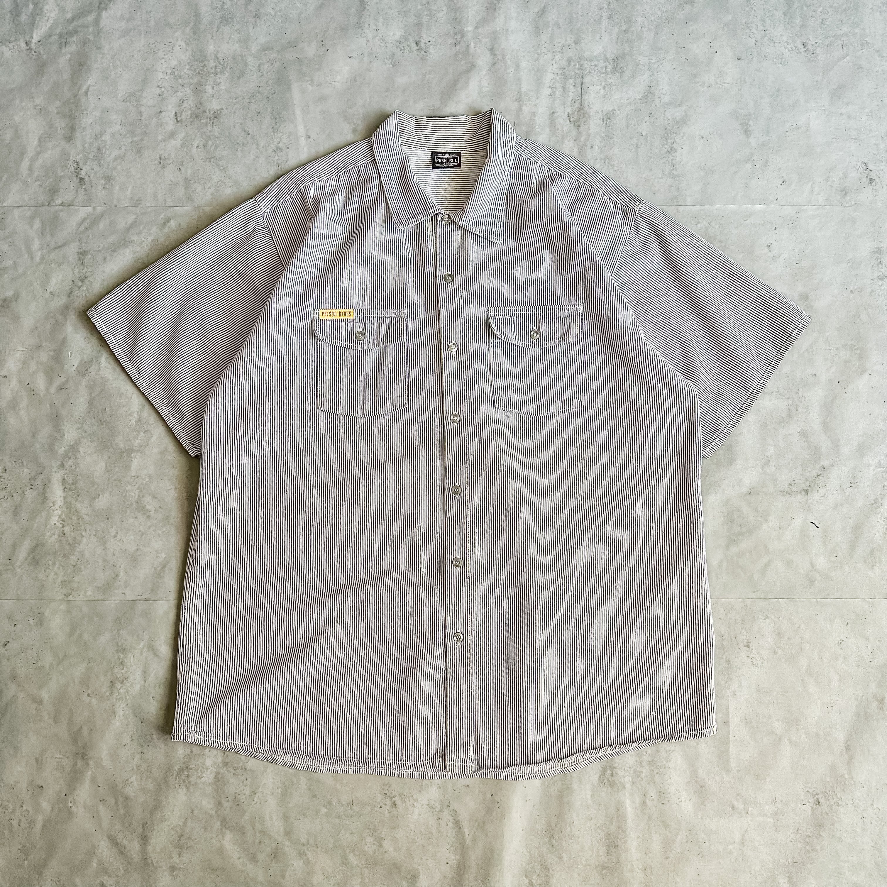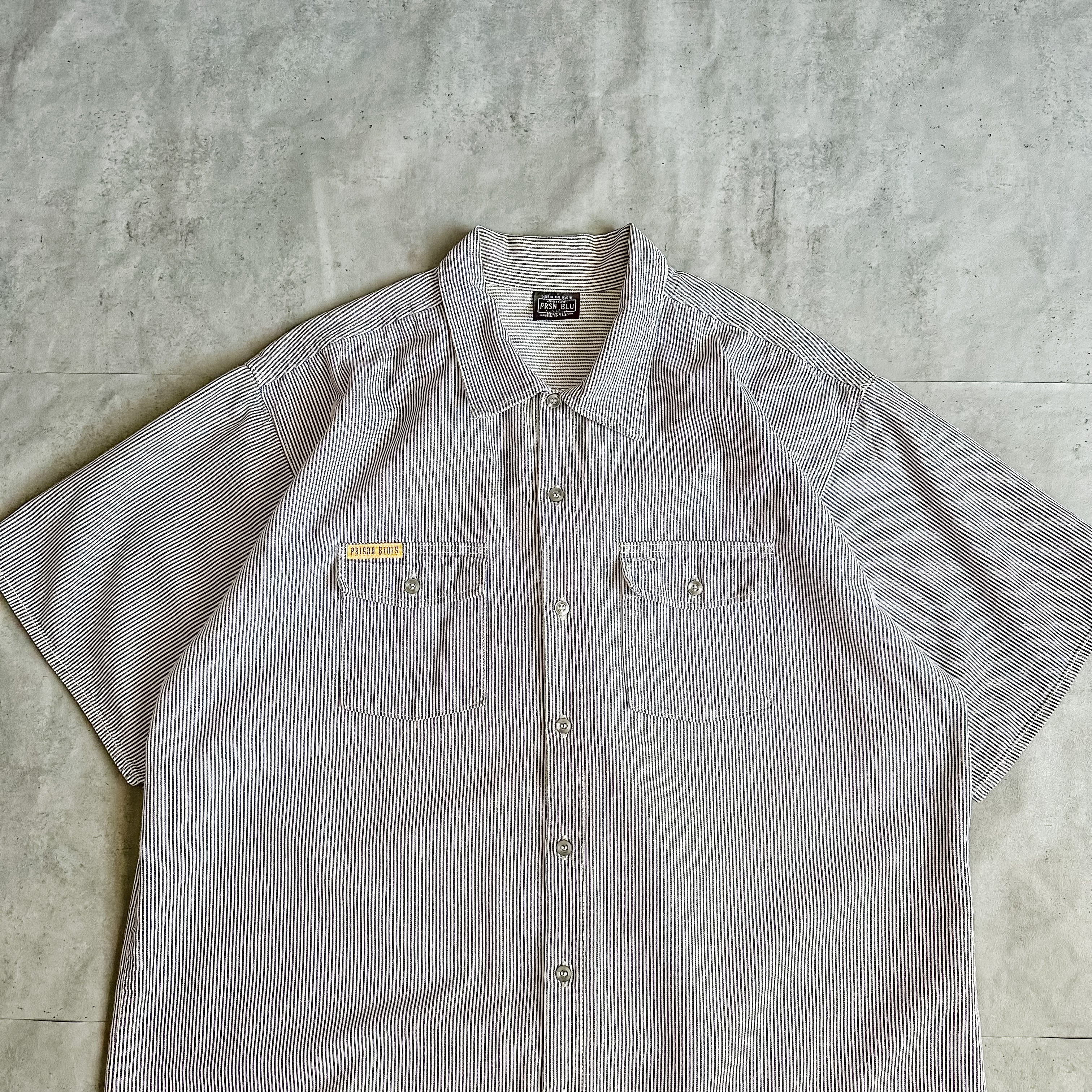 1990's "PRISON BLUES" hickory stripe s/s work shirt made in USA
