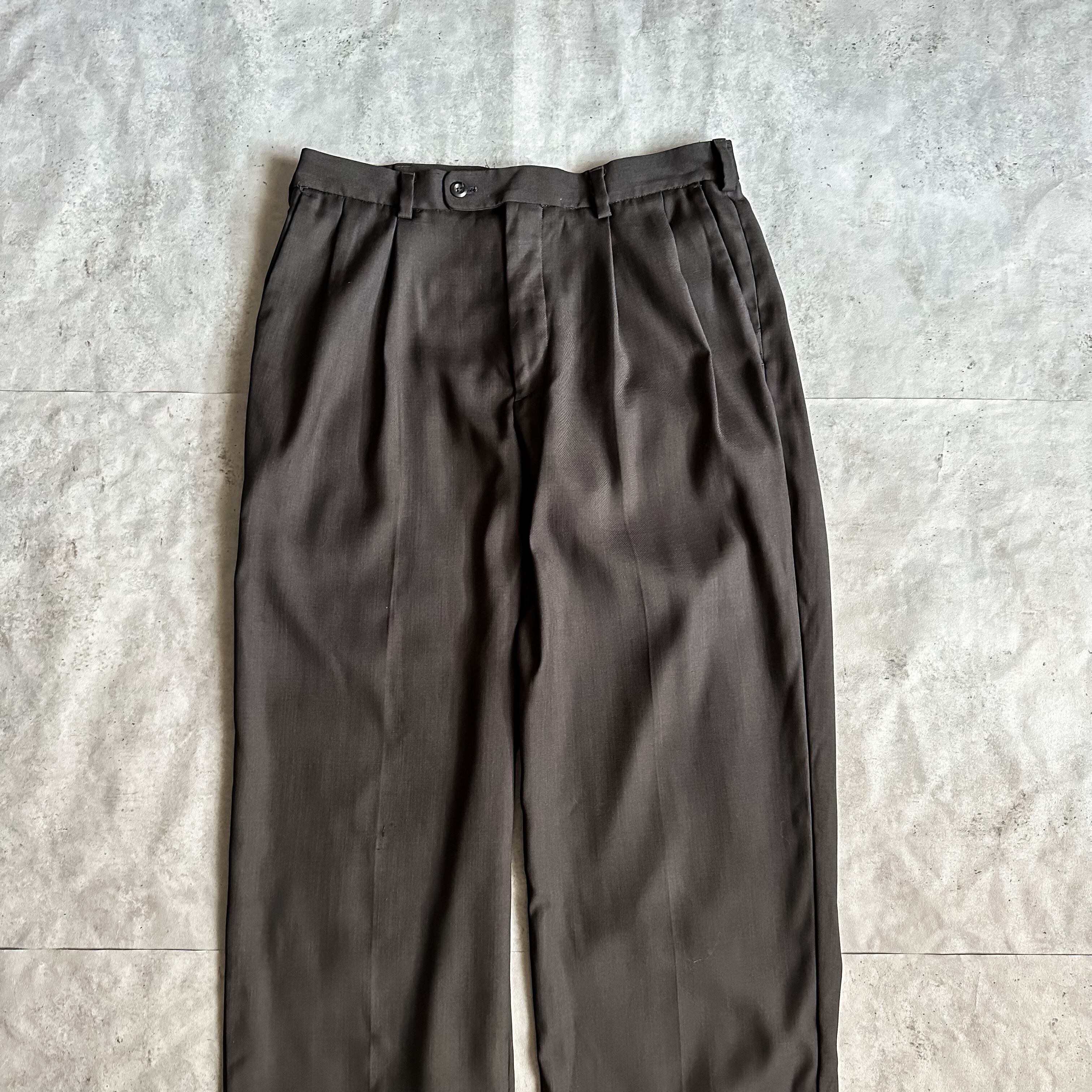 1990's~ "PERRY ELLIS" black two tuck slacks pants