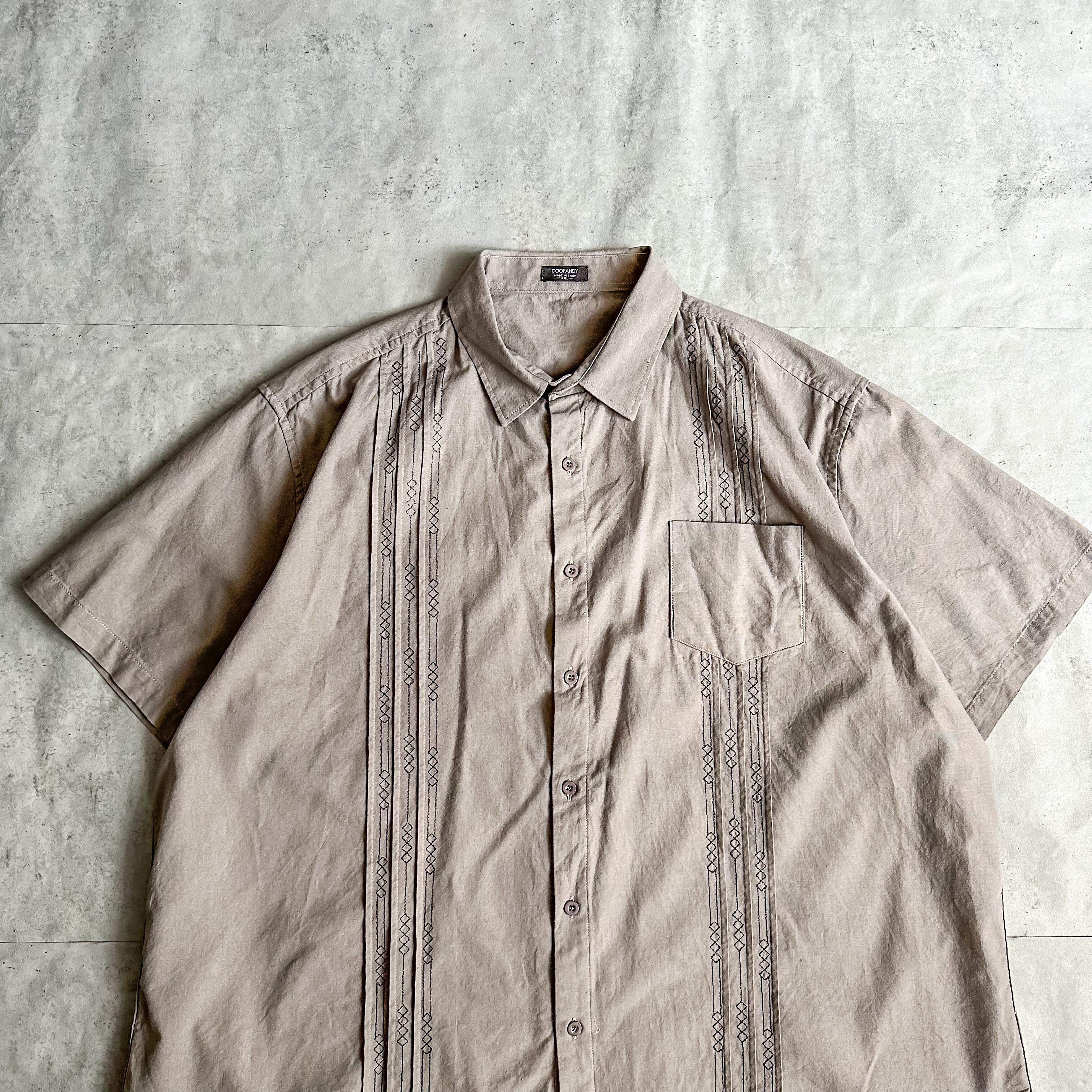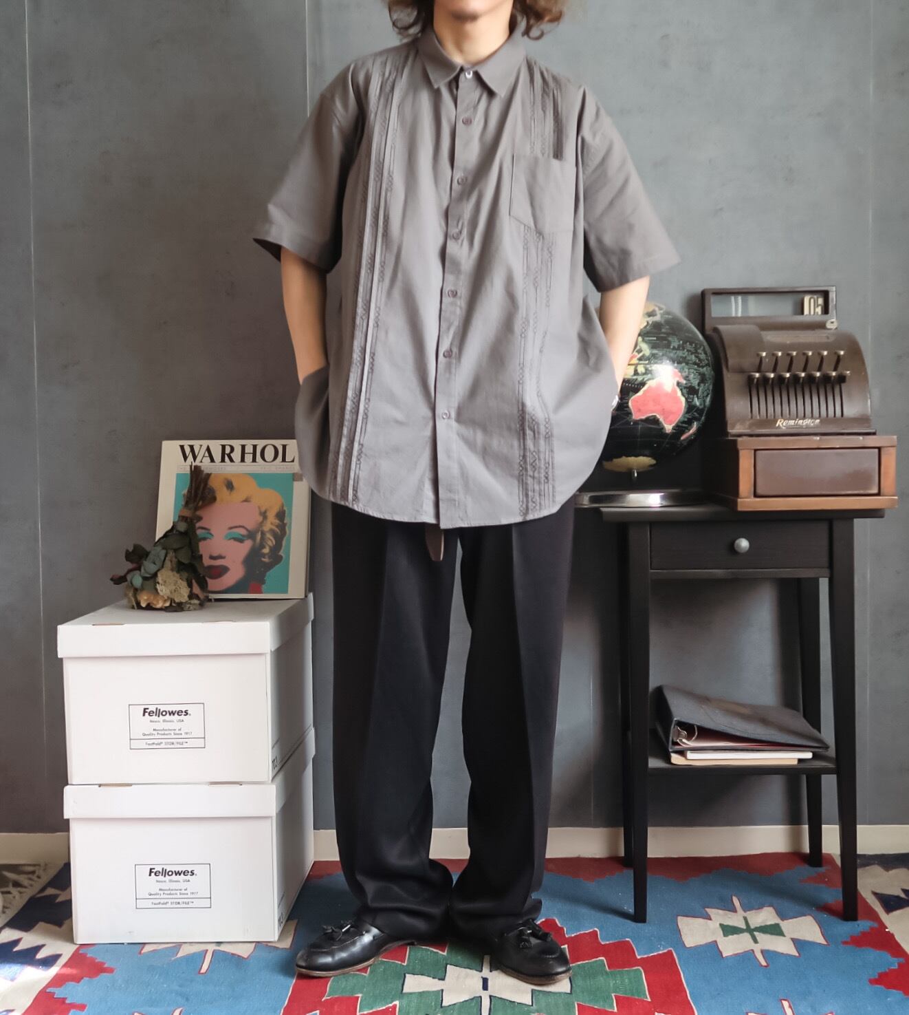 1990's~ bigsize embroidery design steel gray s/s shirt
