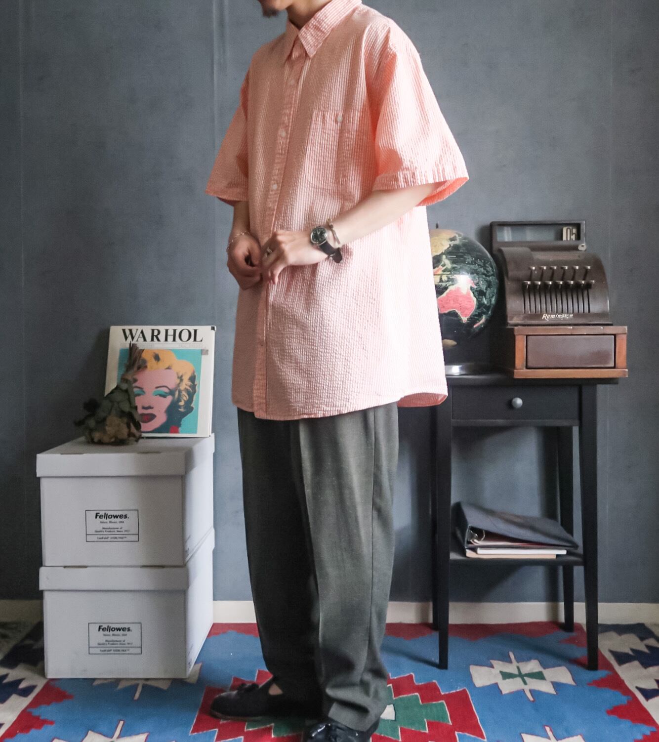 シアサッカーのオレンジカラーでXXL表記のビッグサイズとくれば、探すと意外に見かけない一着かと。