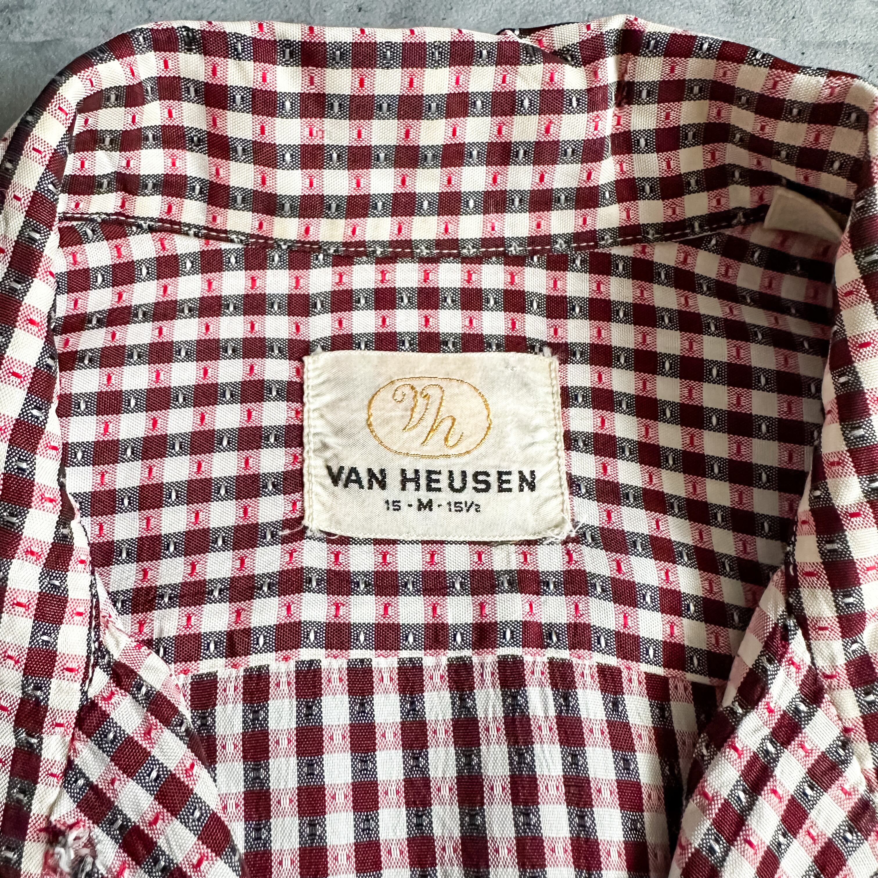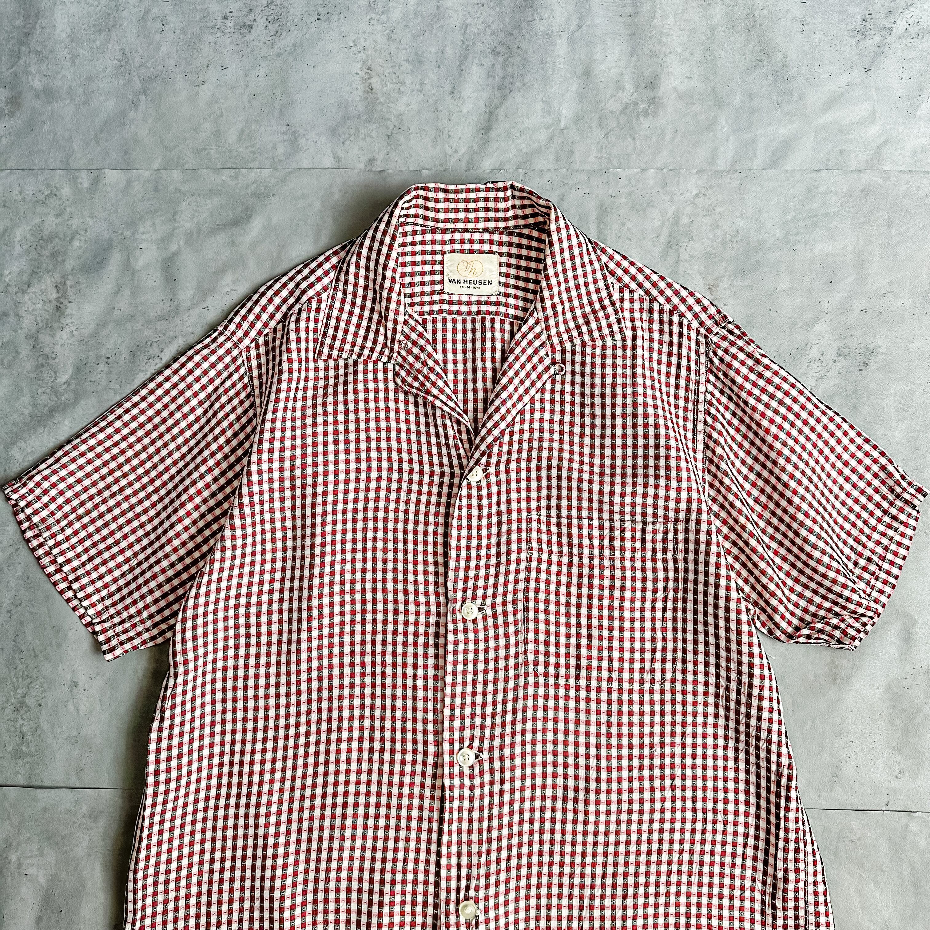 Vintage 1950's~ "VAN HEUSEN" gingham check open collar s/s shirt