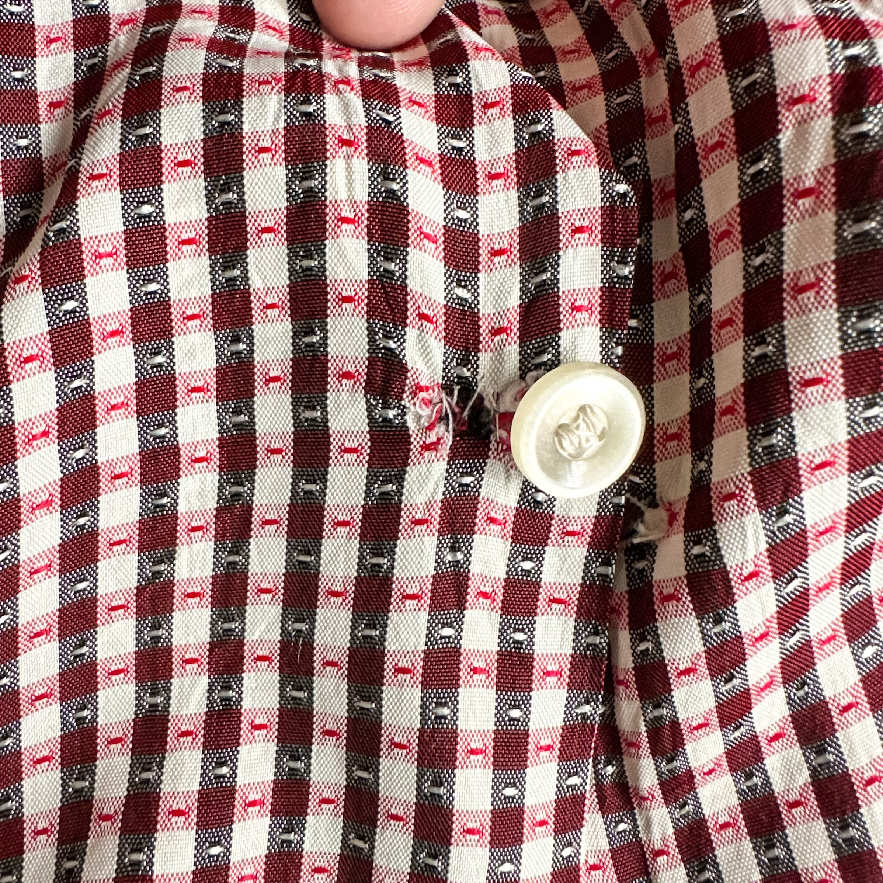 少し光沢のあるシルクやアセテート系の素材に、ホワイト×ブラックの細かなギンガムチェック。