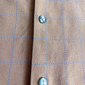 ブラウンとブルー系のチェック柄に、とろみがあり落ち感のあるレーヨンファブリック。