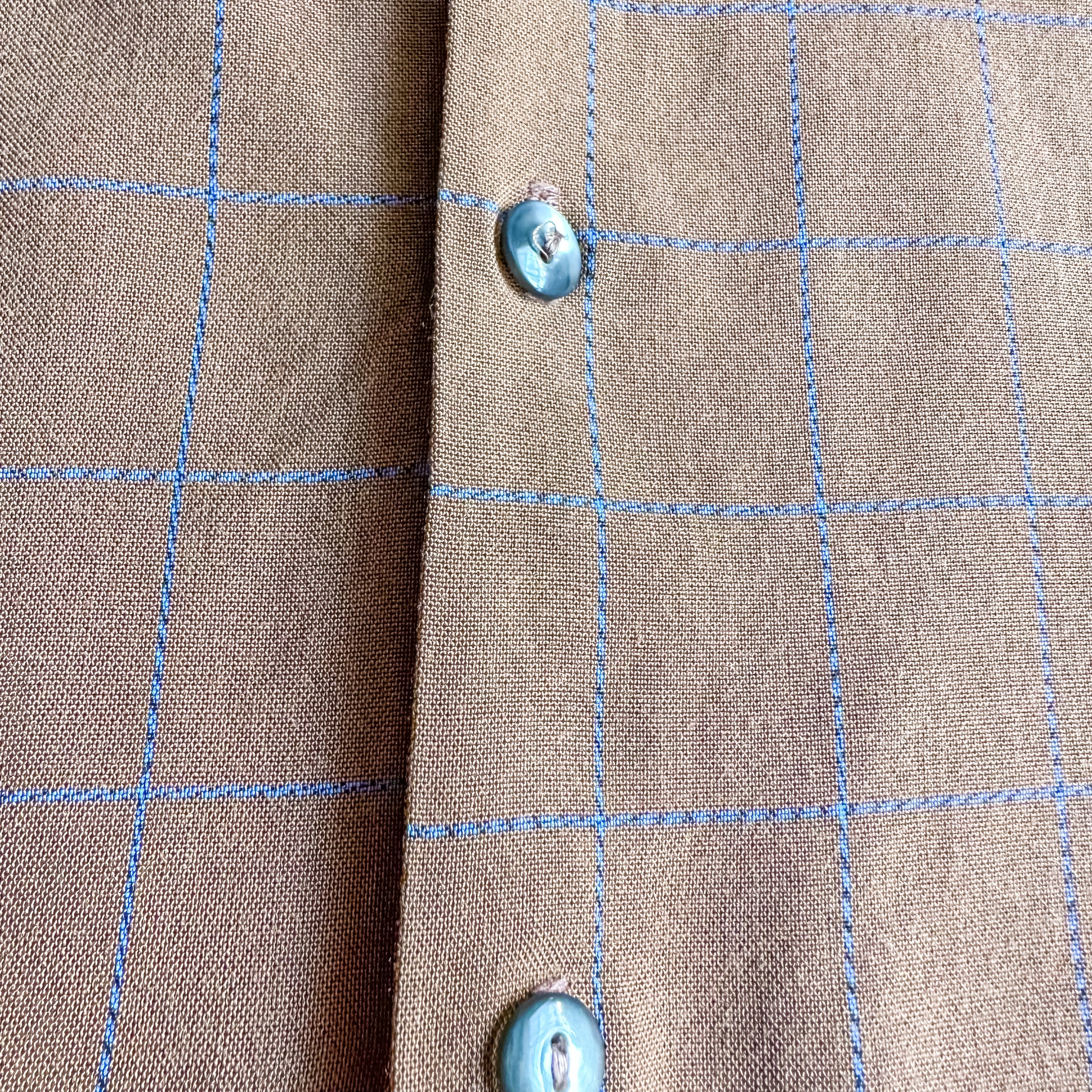 Vintage ~1970's "TOWN CRAFT" brown plaid pattern rayon s/s shirt