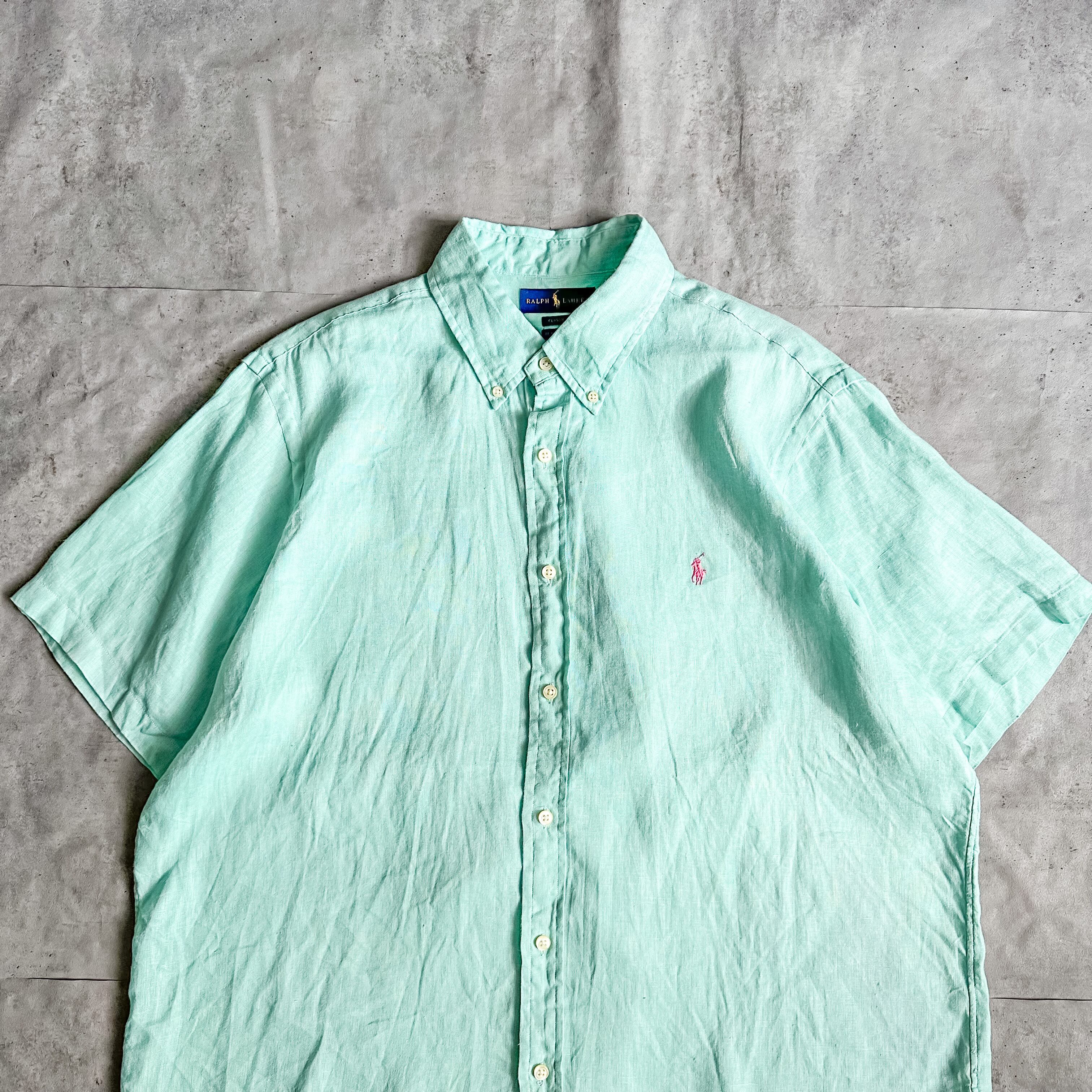 2000's~ Ralph Lauren light green B/D linen s/s shirt