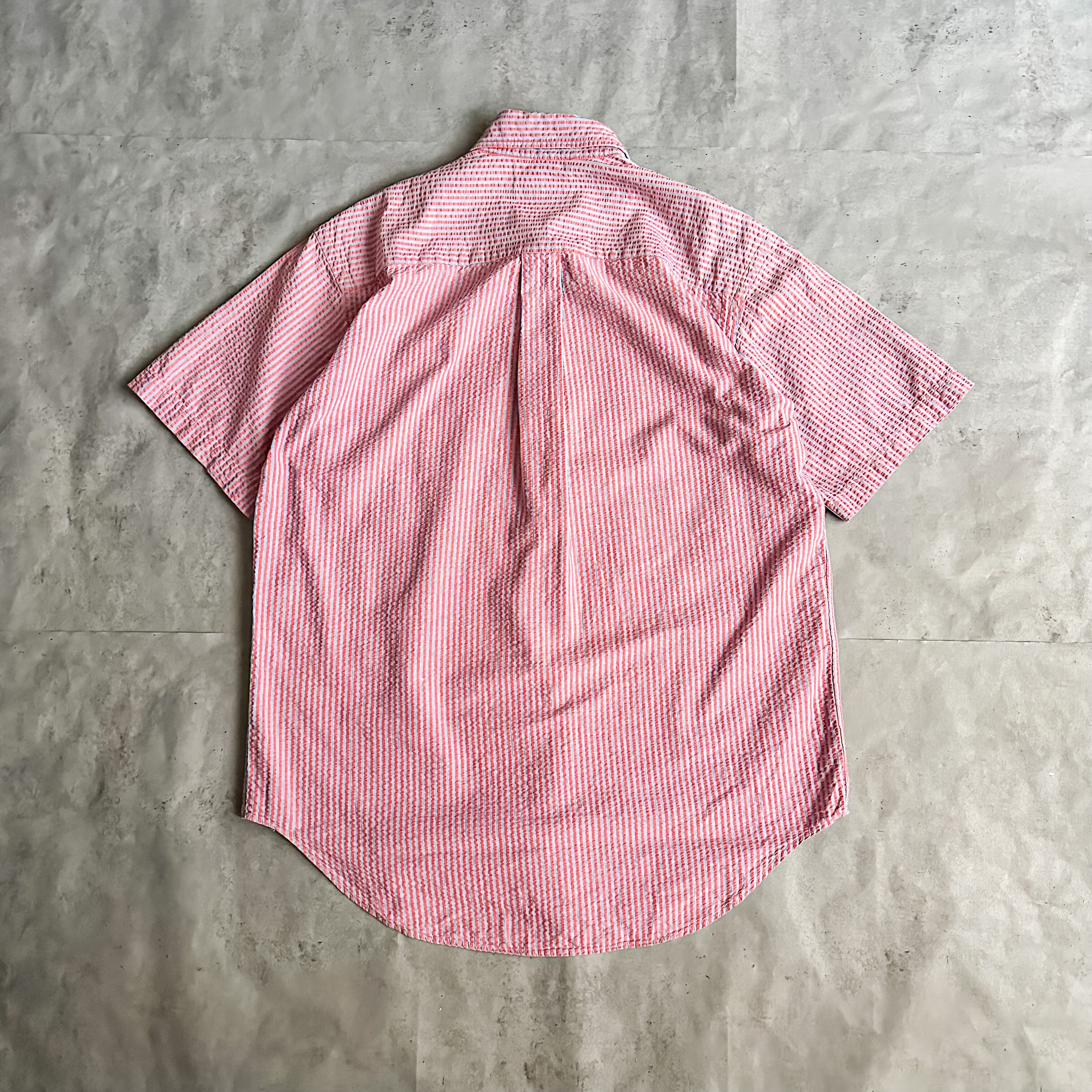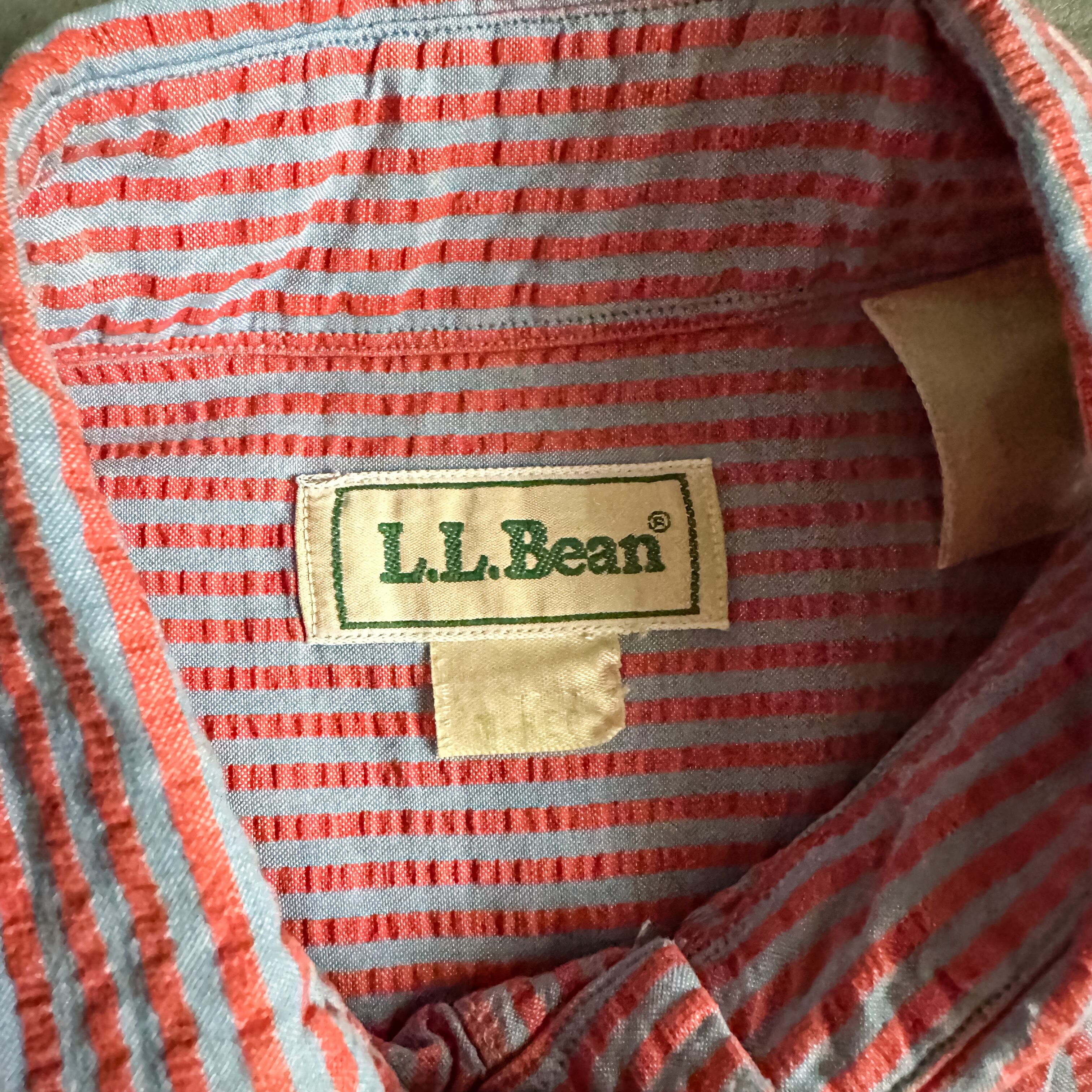 1980's~ L.L.Bean stripe pattern B/D seersucker s/s shirt made in USA