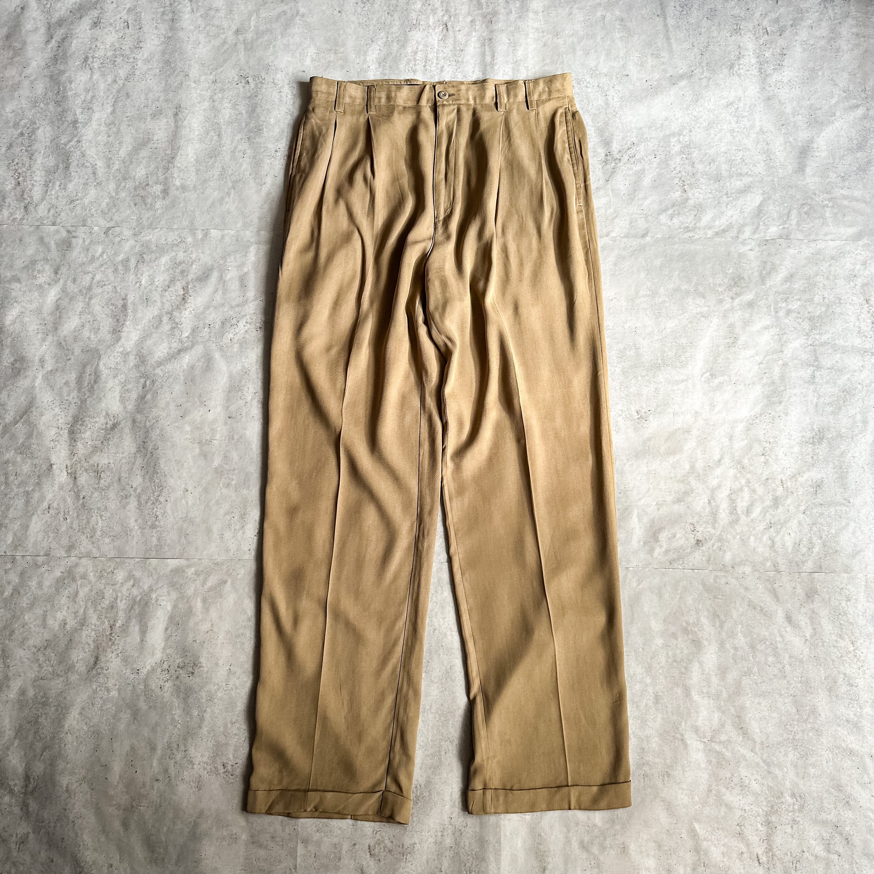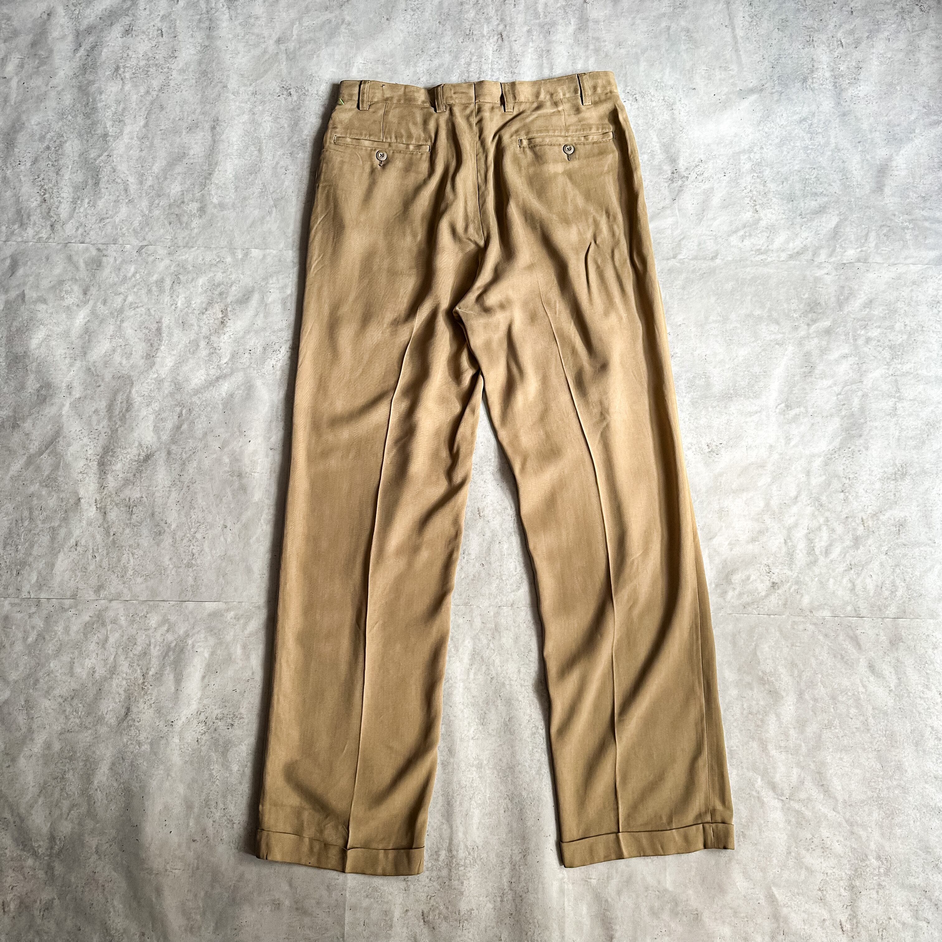 特徴 :光沢感のある絶妙なカラーが独特な表情を醸し出してくれるクールな1990's~頃のシルクスラックス。