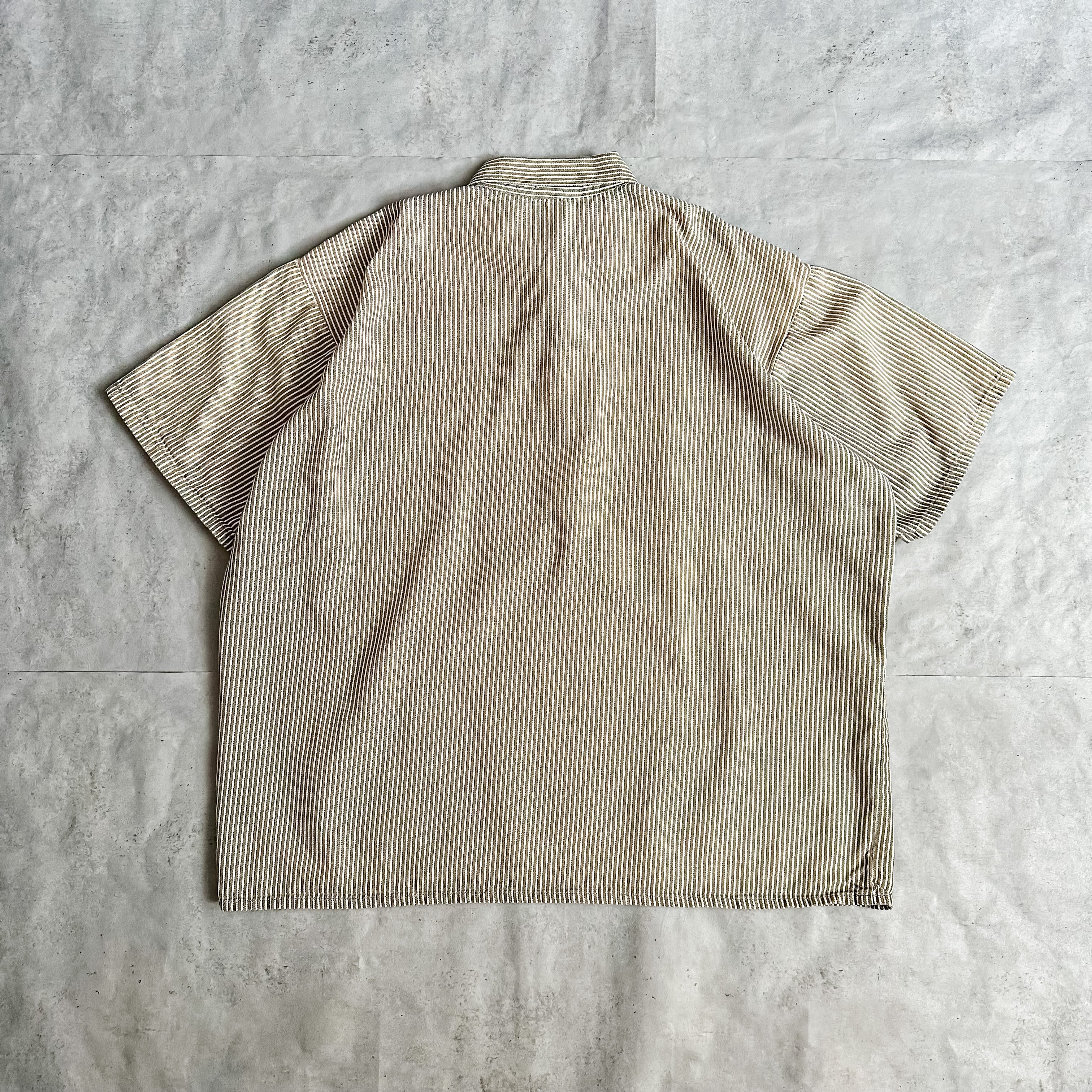 1980's~ "BEN DAVIS" stripe pattern halfzip s/s shirt made in USA