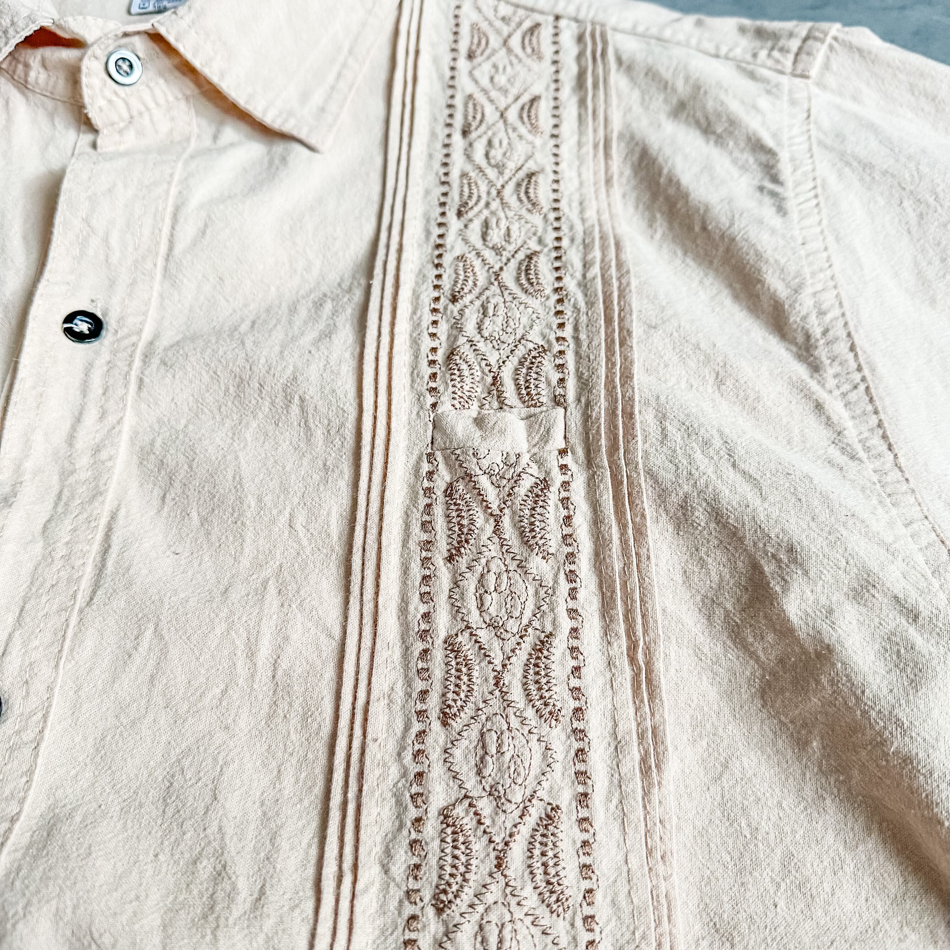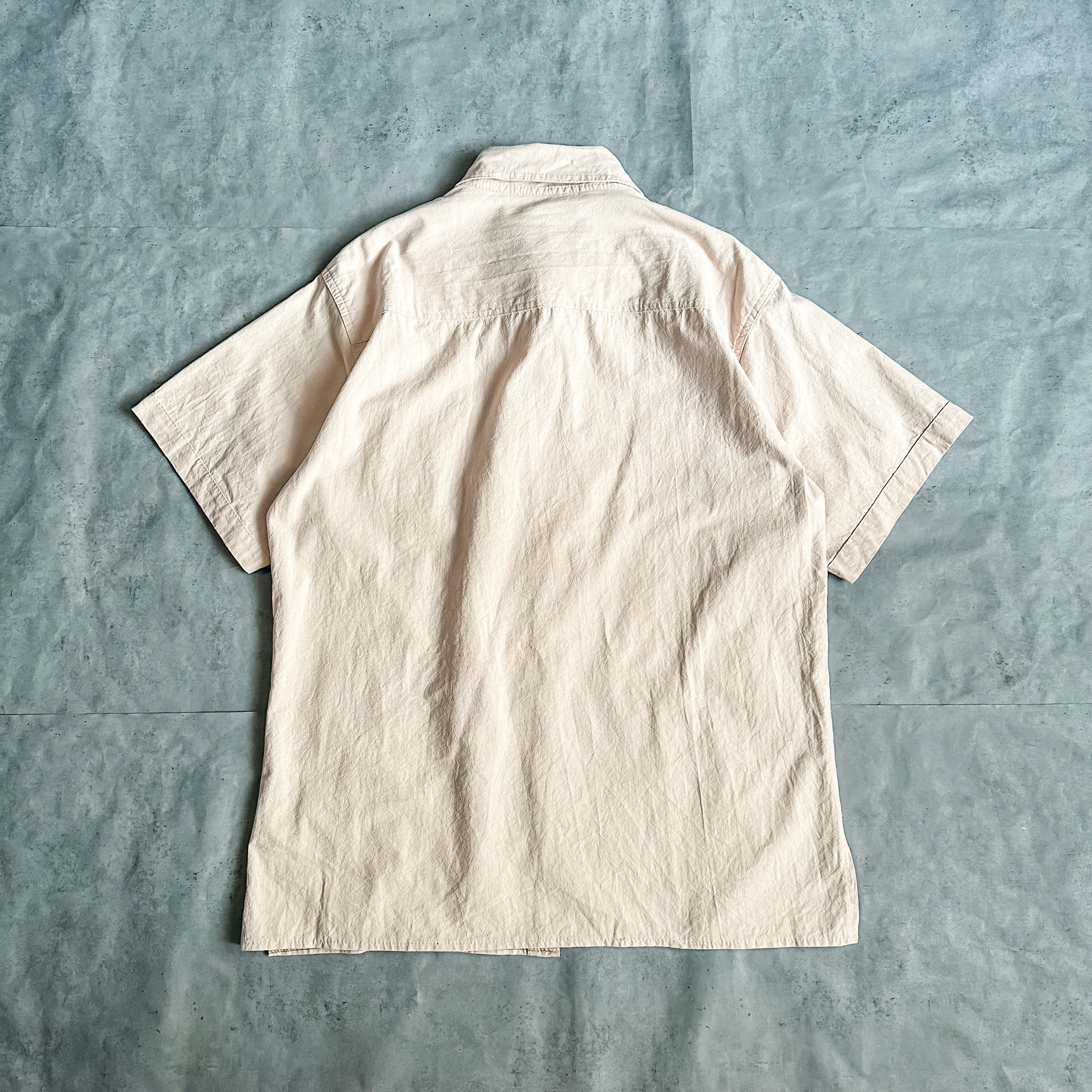 1980's~ pleats×embroidery design box silhouette cotton s/s shirt