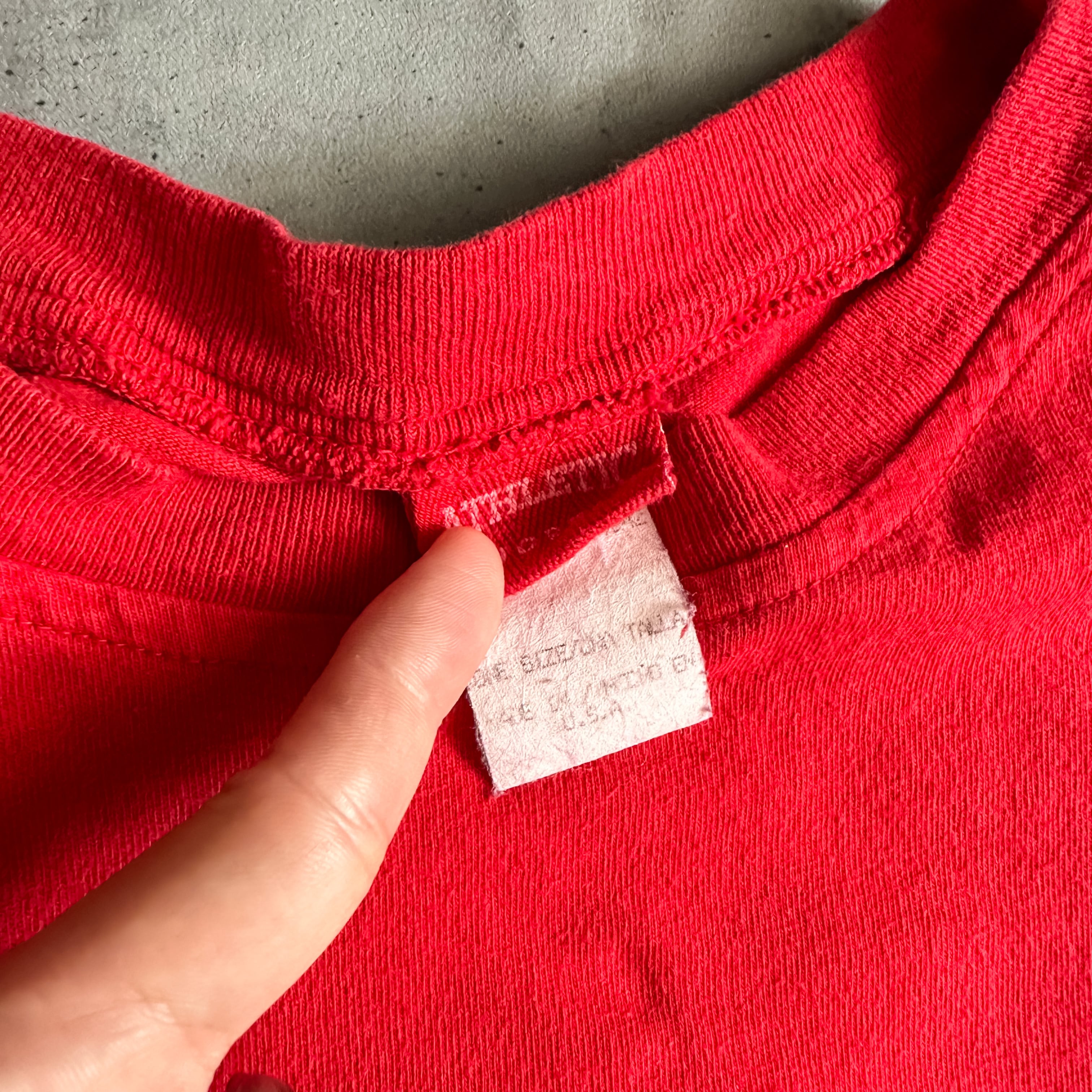オールコットンのレッドボディーで、袖、裾はダブルステッチ。