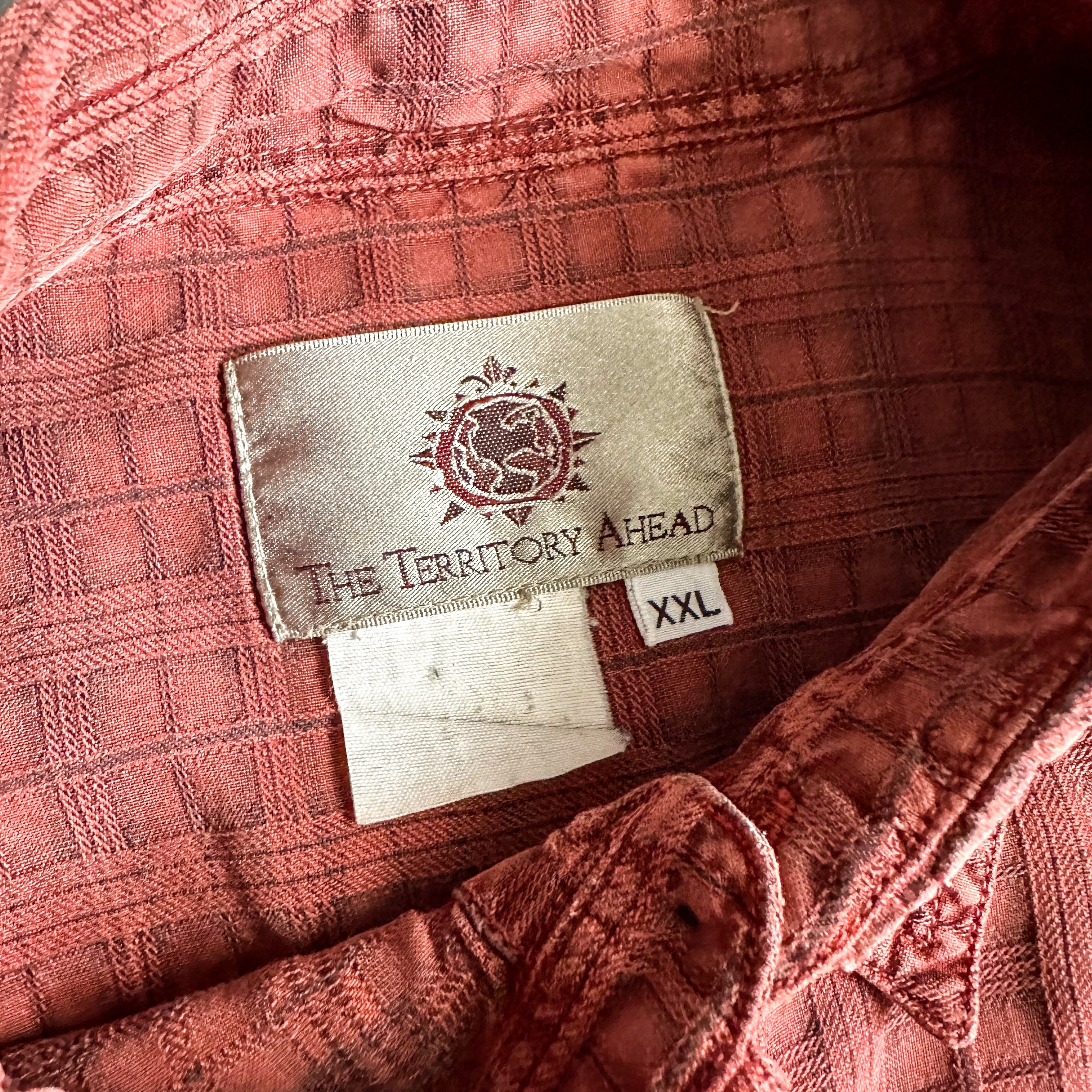 1990's "THE TERRITORY AHEAD" plaid pattern s/s silk shirt