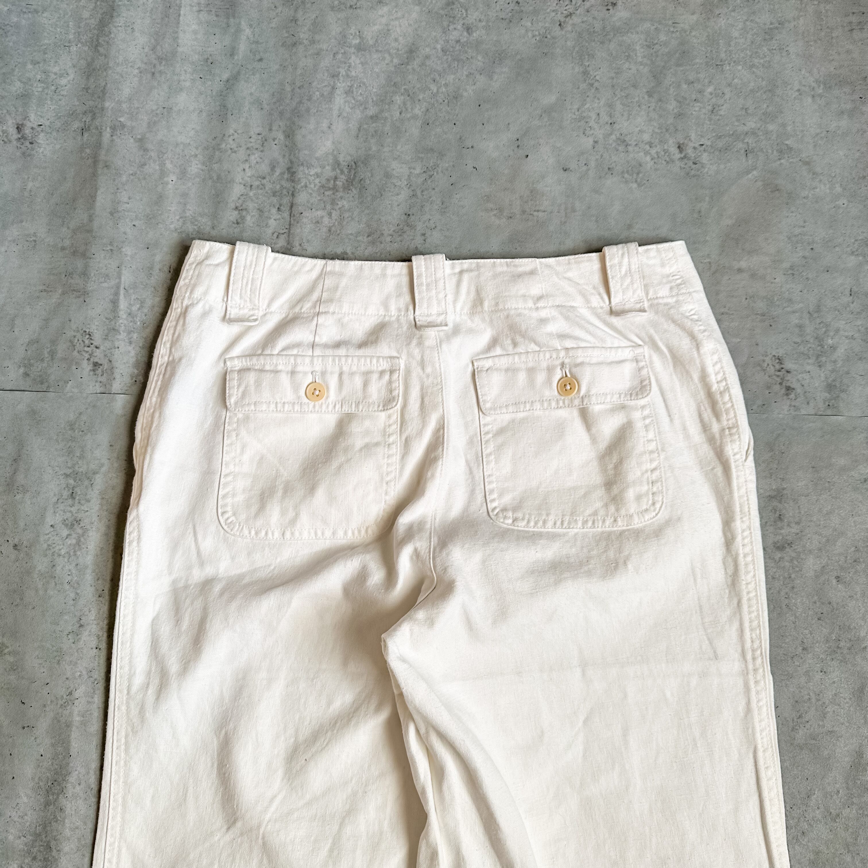 1990's "Lauren" Ralph Lauren white linen cotton flare pants