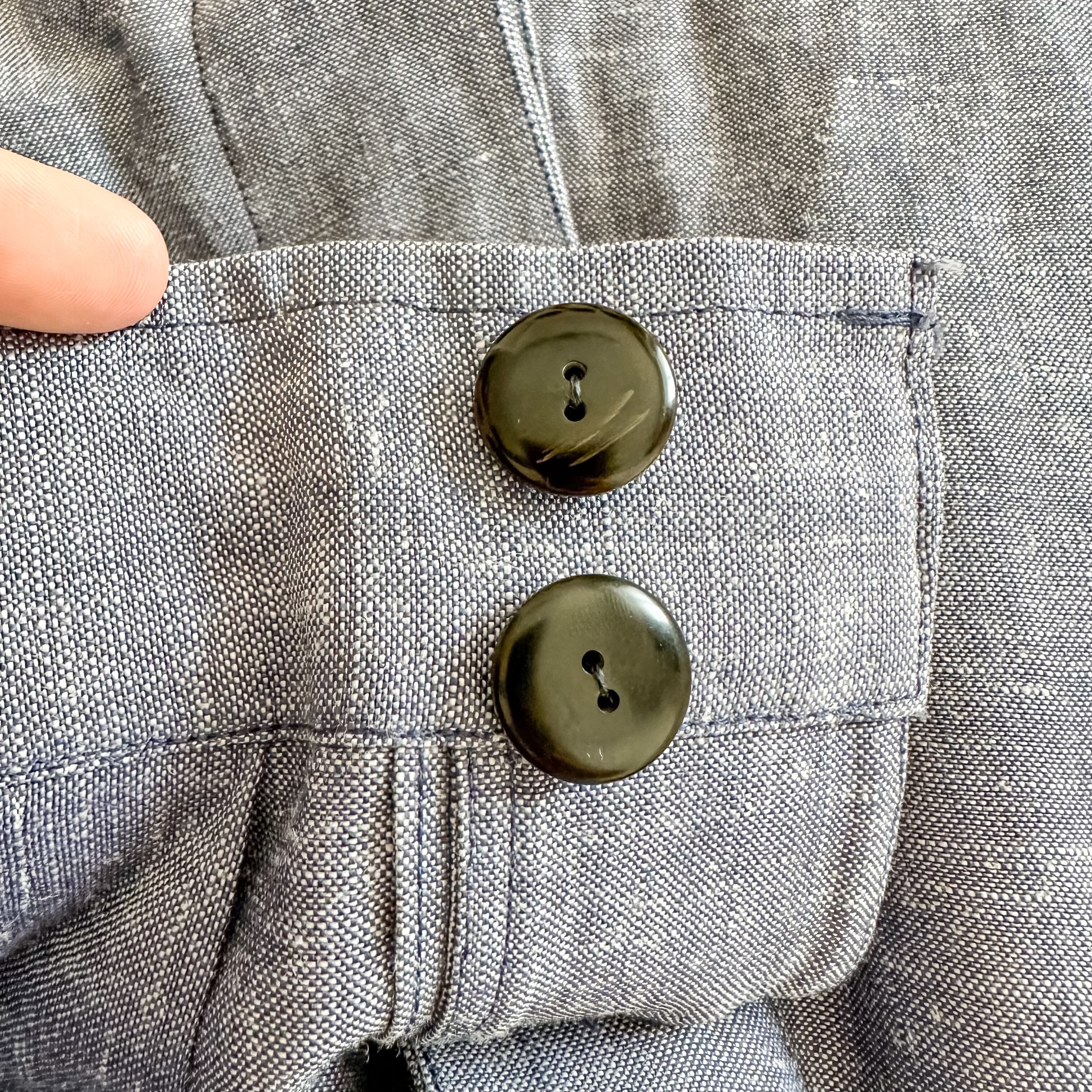 ヴィンテージリネン特有の粗く肉厚な素材は他では味わえない風合いと清涼感があり、落ち感もある非常に特徴的なアイテムです。