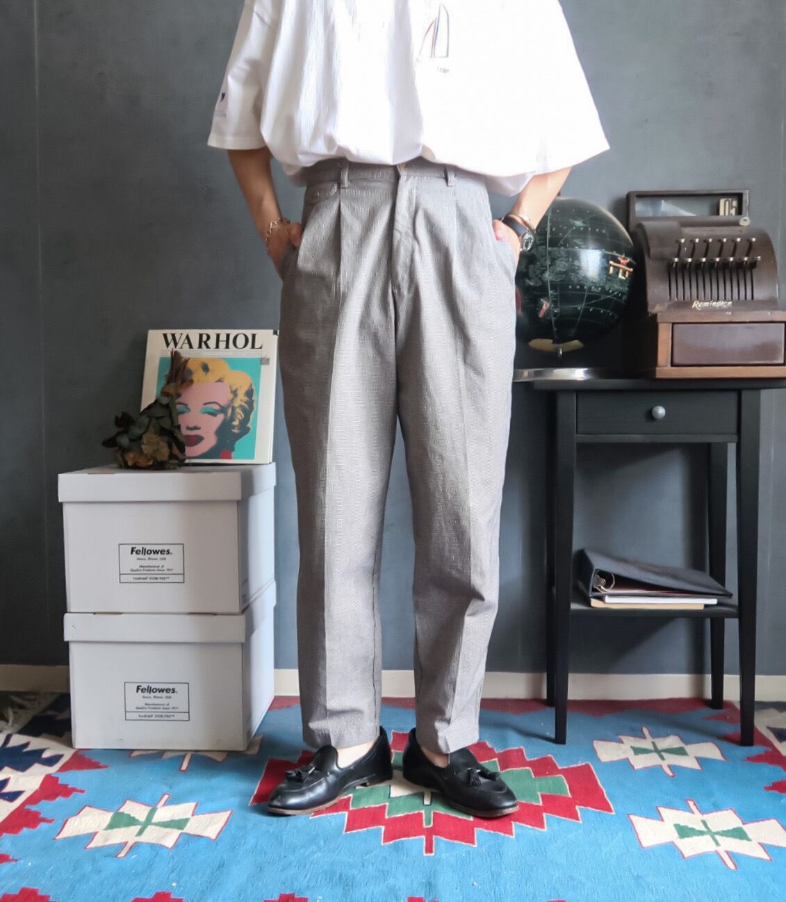 ツータックで太もも周りはゆったりし股上も深く、裾にかけてしっかりとテーパードのかかる絶妙なシルエット。