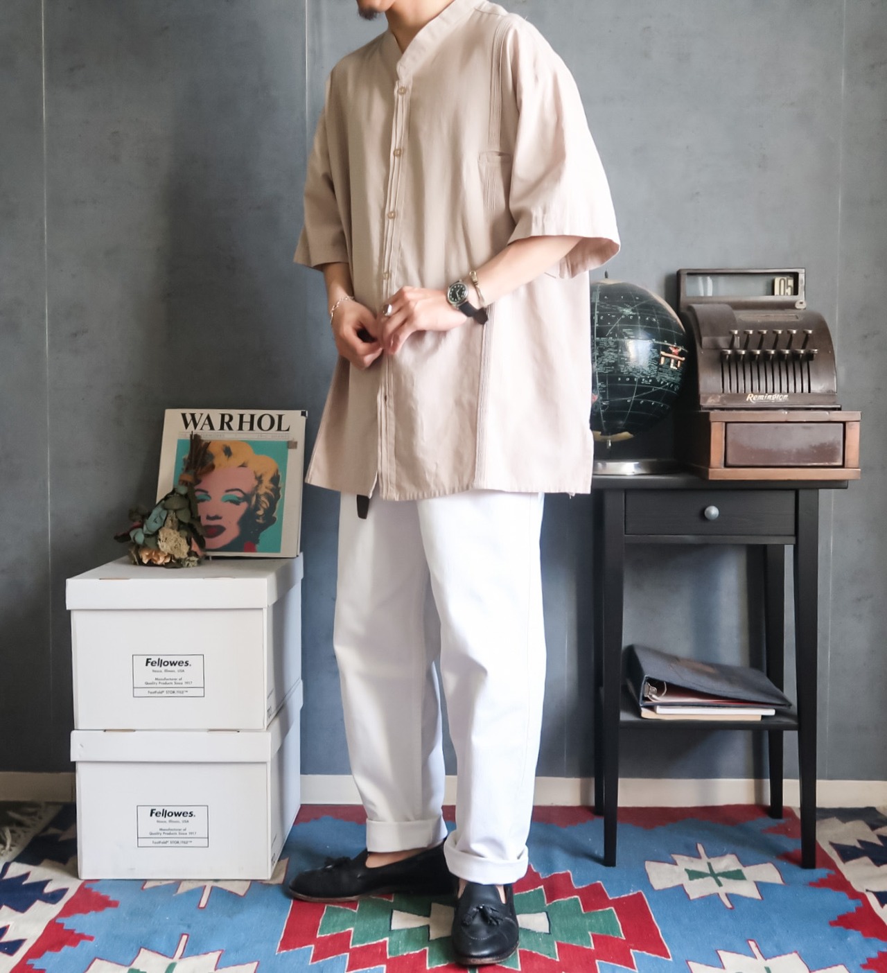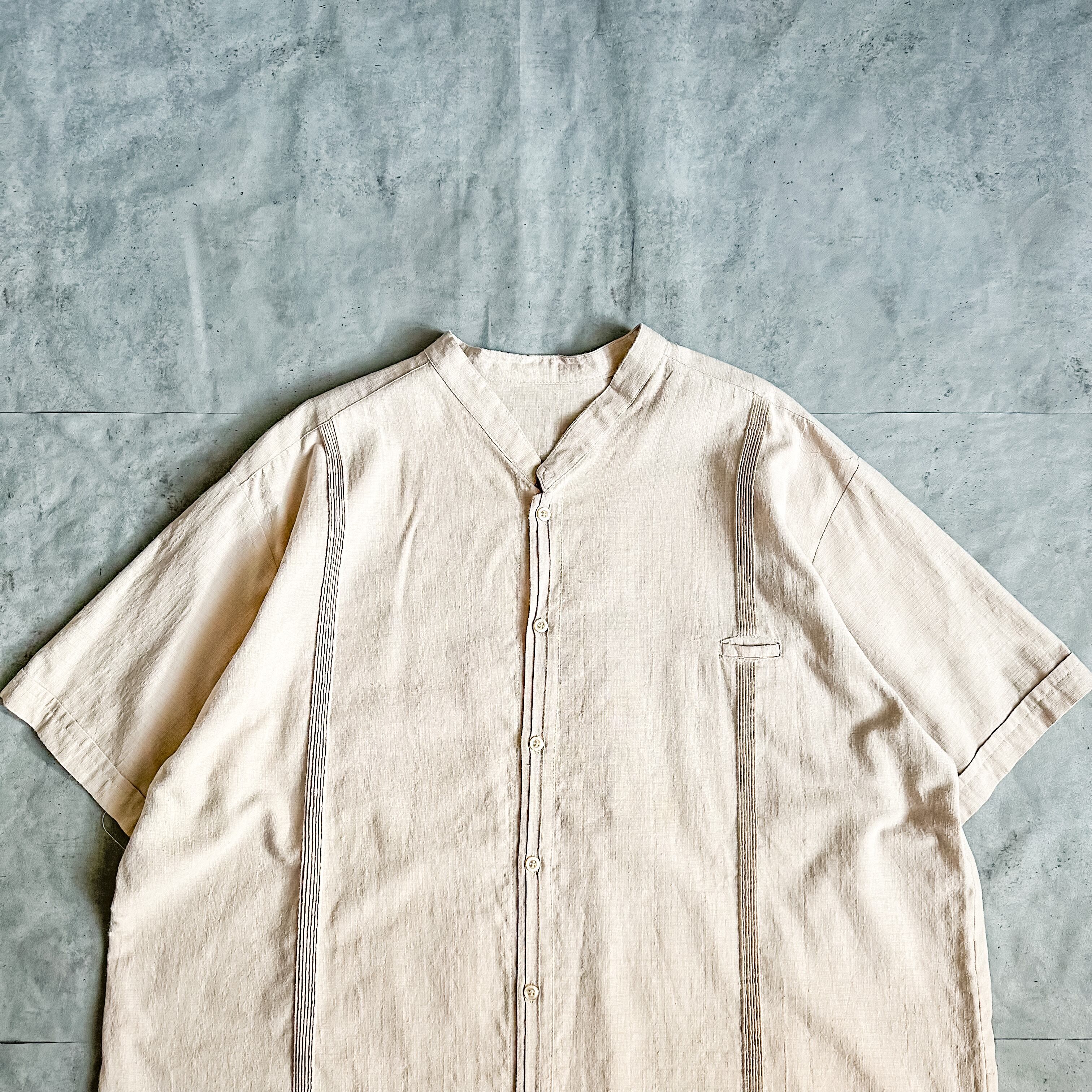 特徴 :1990's頃のナチュラルな雰囲気のスタンドカラーリネンコットンシャツ。