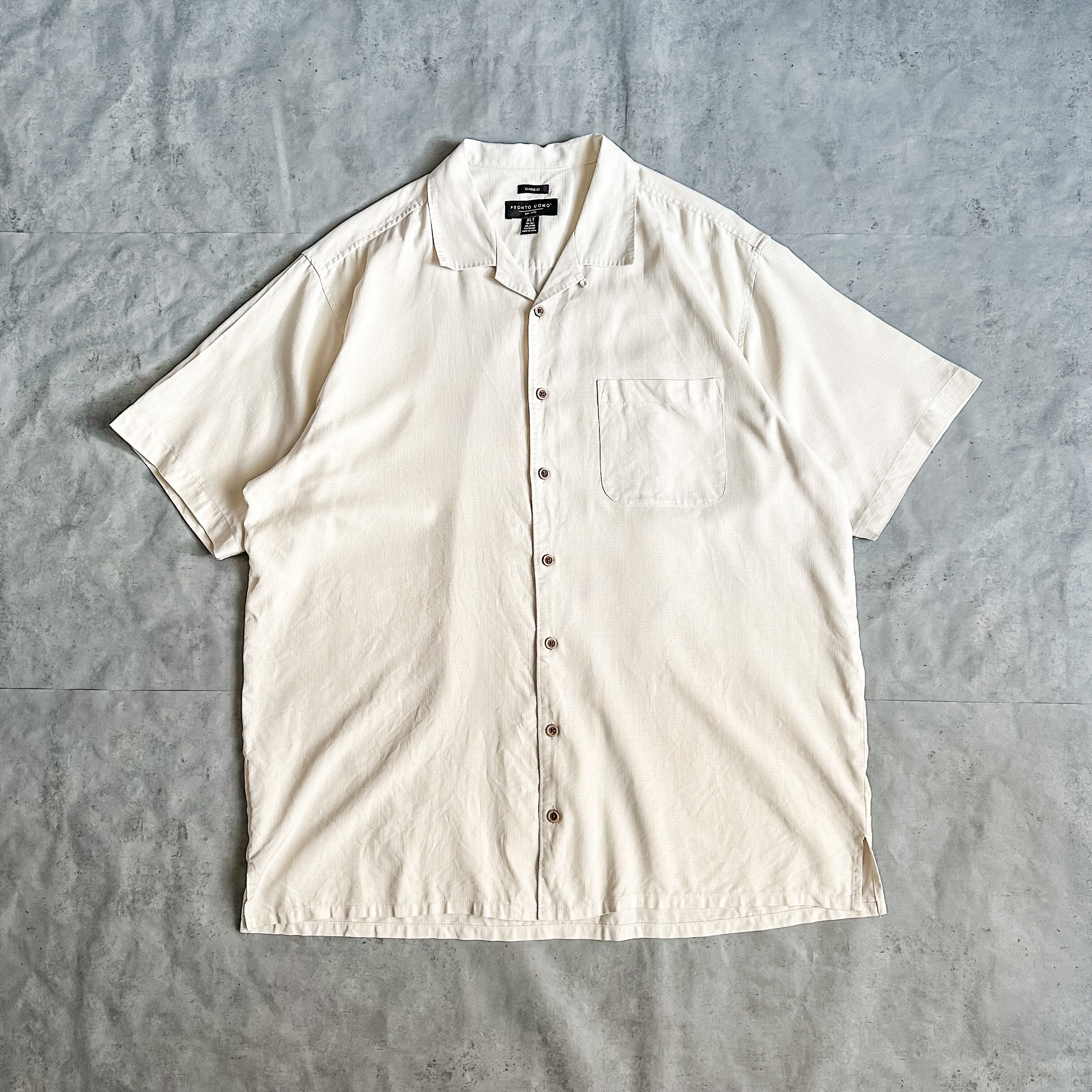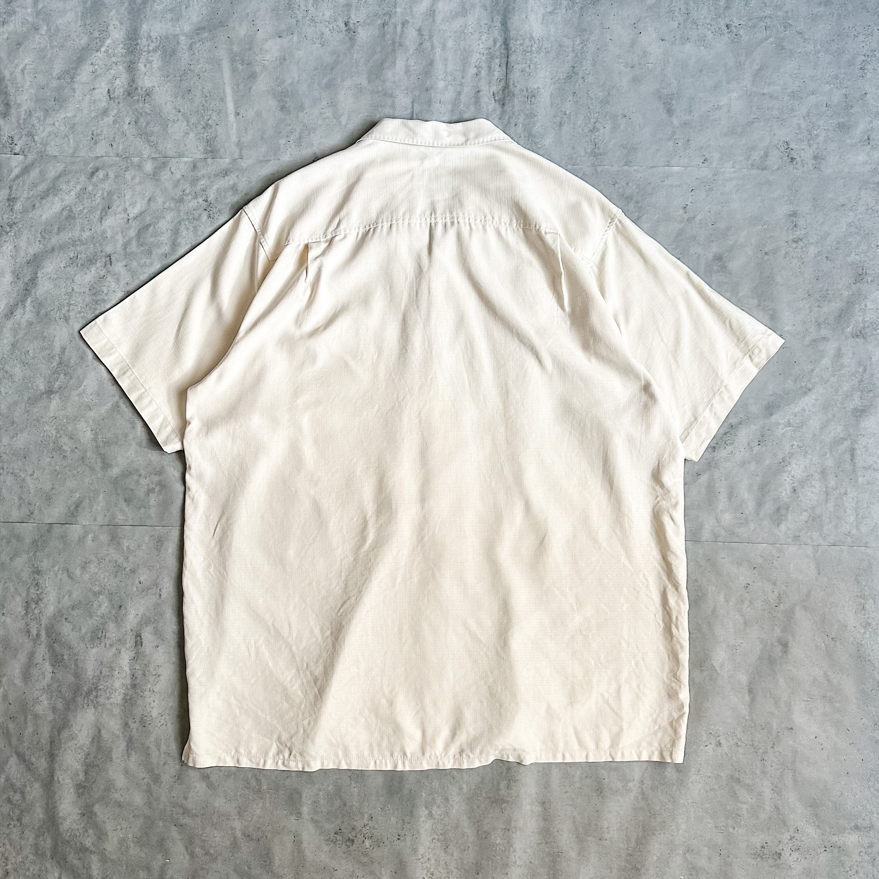 1990's~ "PRONT-UOMO" 50's style open collar silk×polyester s/s shirt