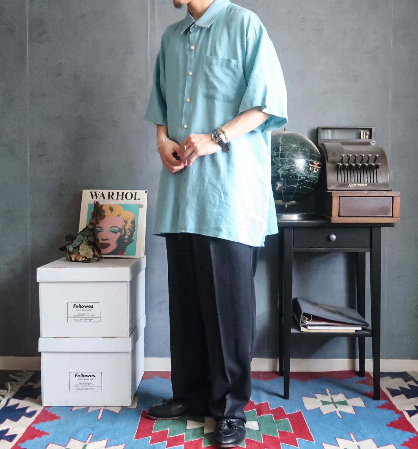 1990's~ "PRONT-UOMO" box silhouette linen s/s shirt