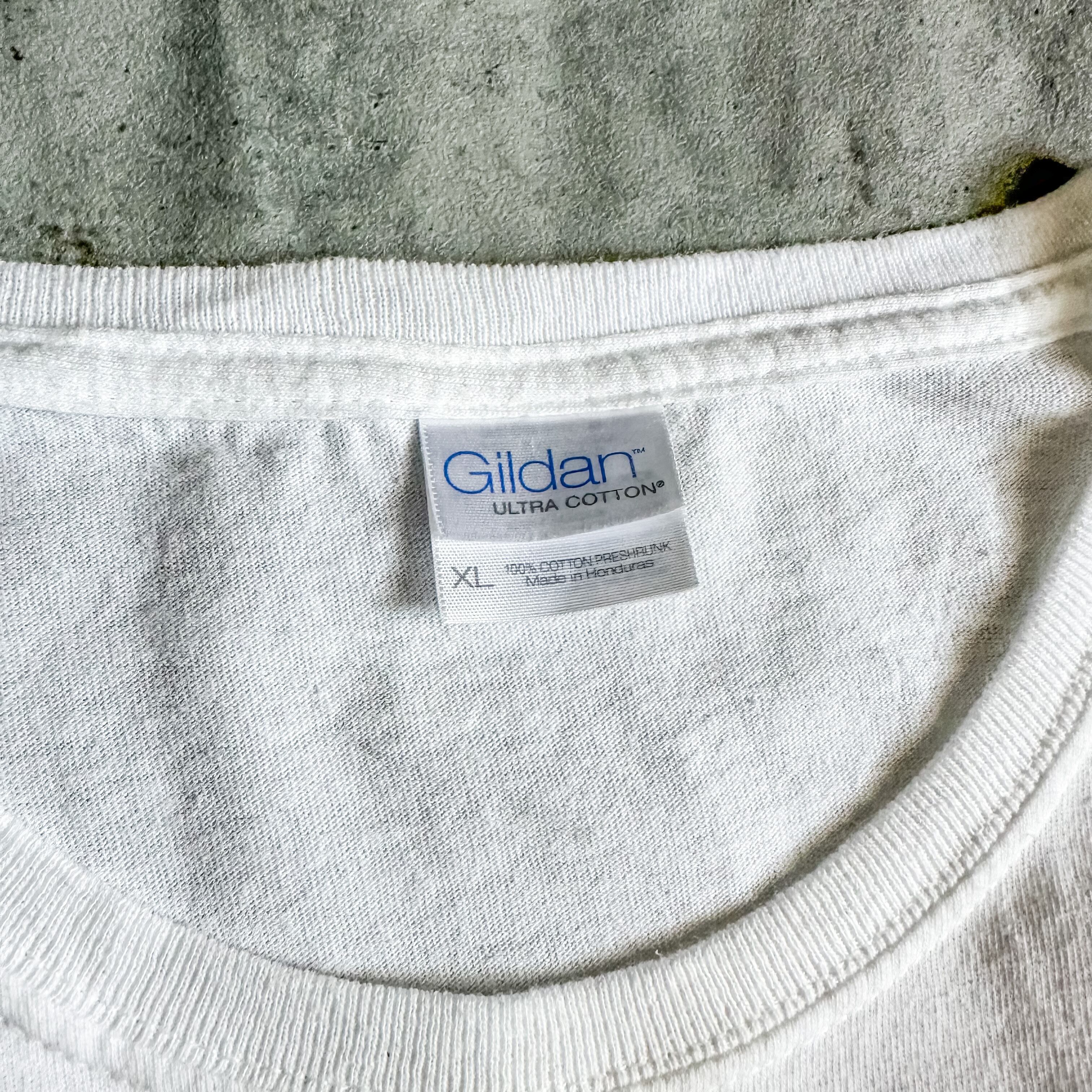 GILDANのコットンボディーで袖裾ダブルステッチ。