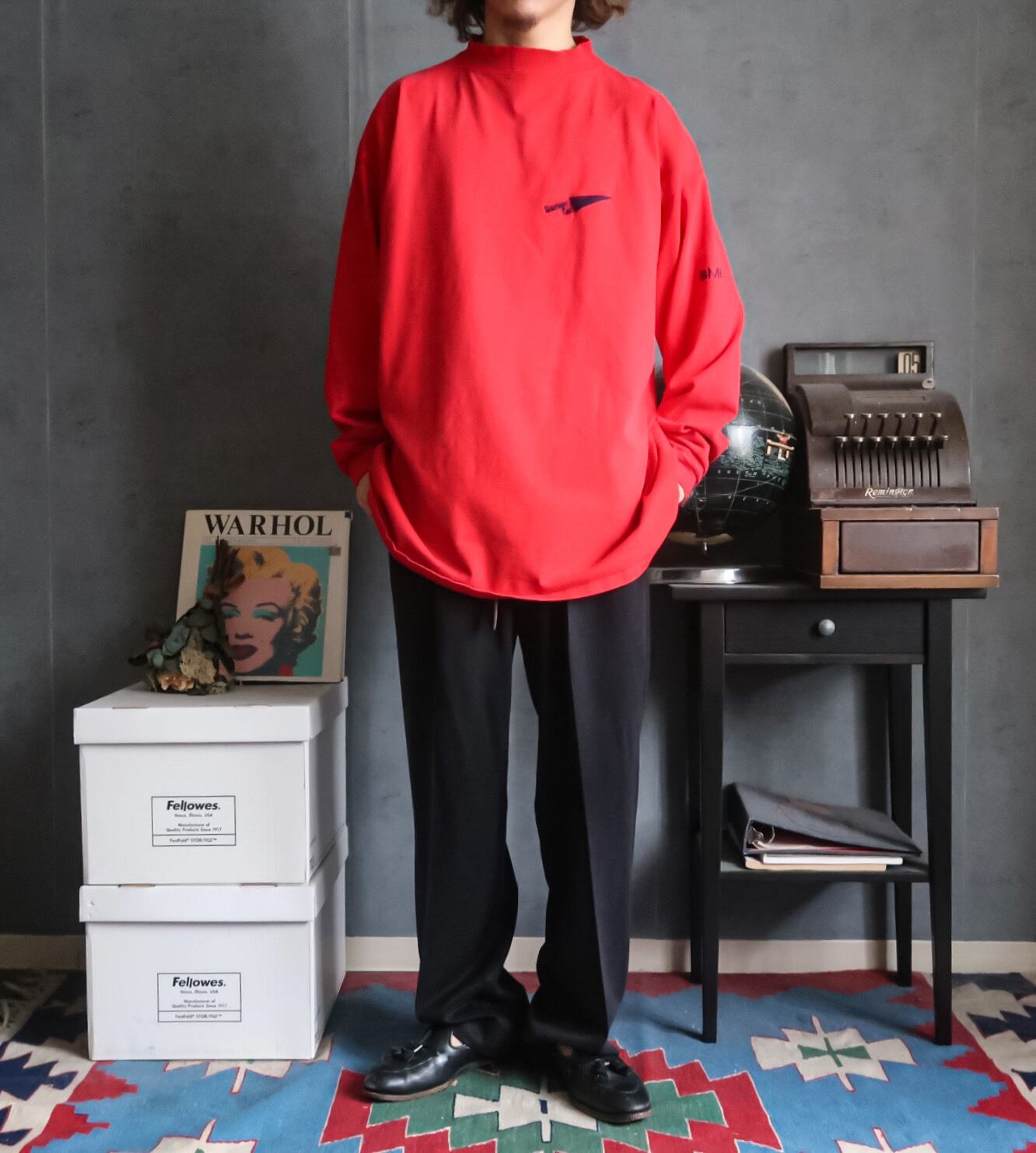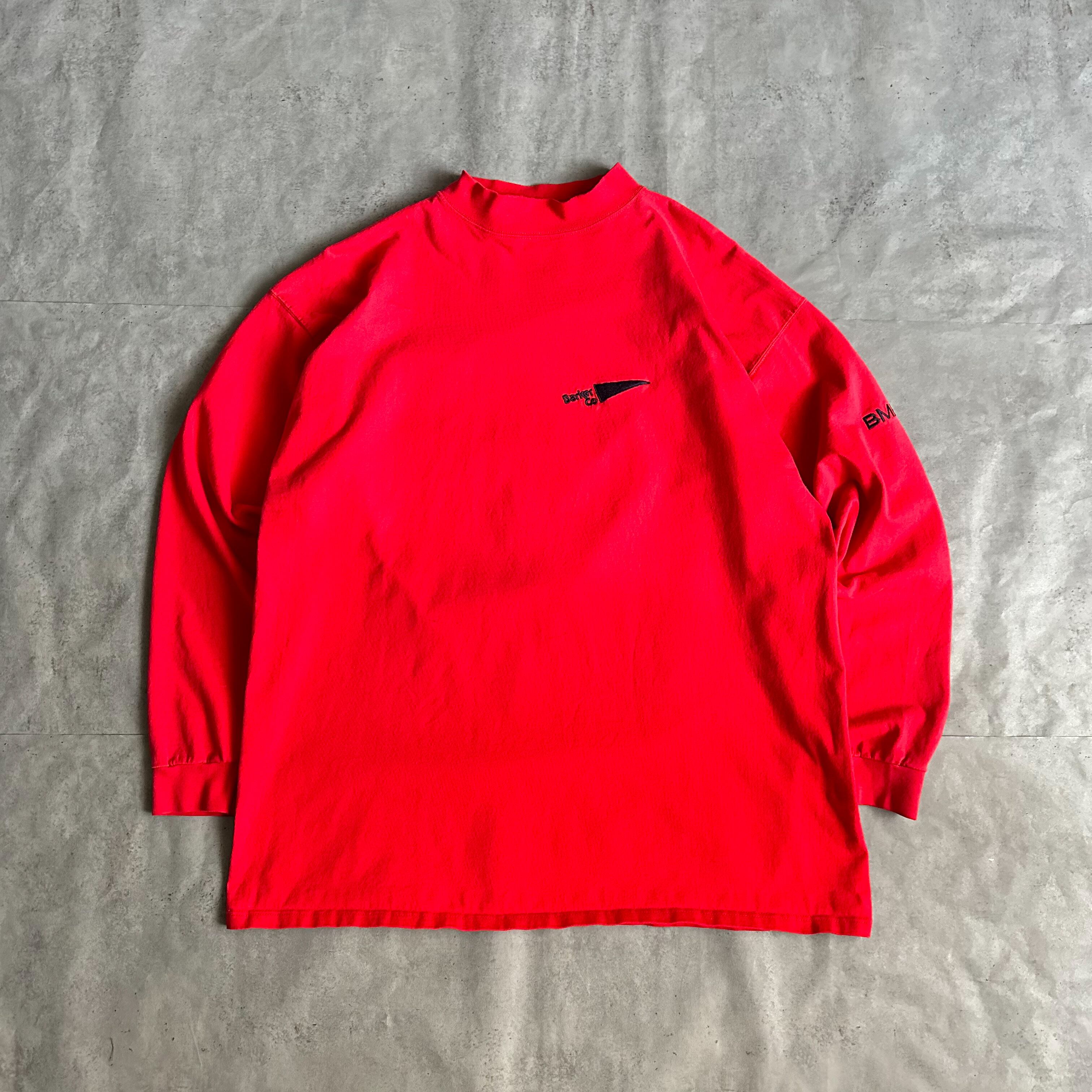 レッドカラーに胸には"Barker co"、そして袖には"BMB"の刺繍が入るデザイン。