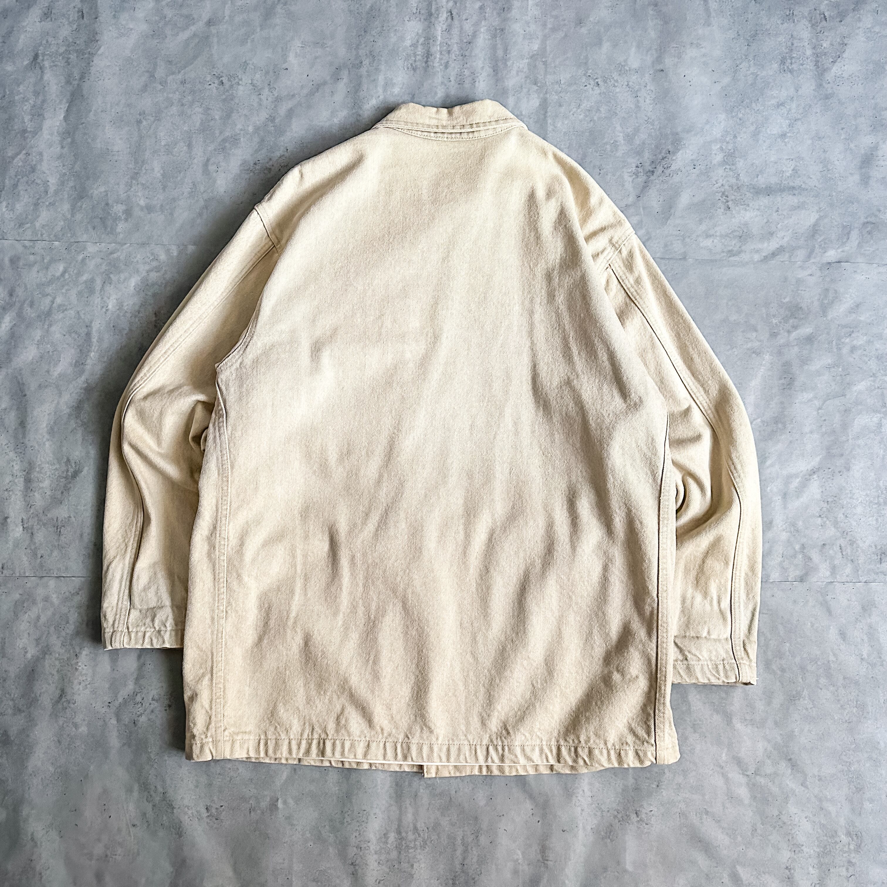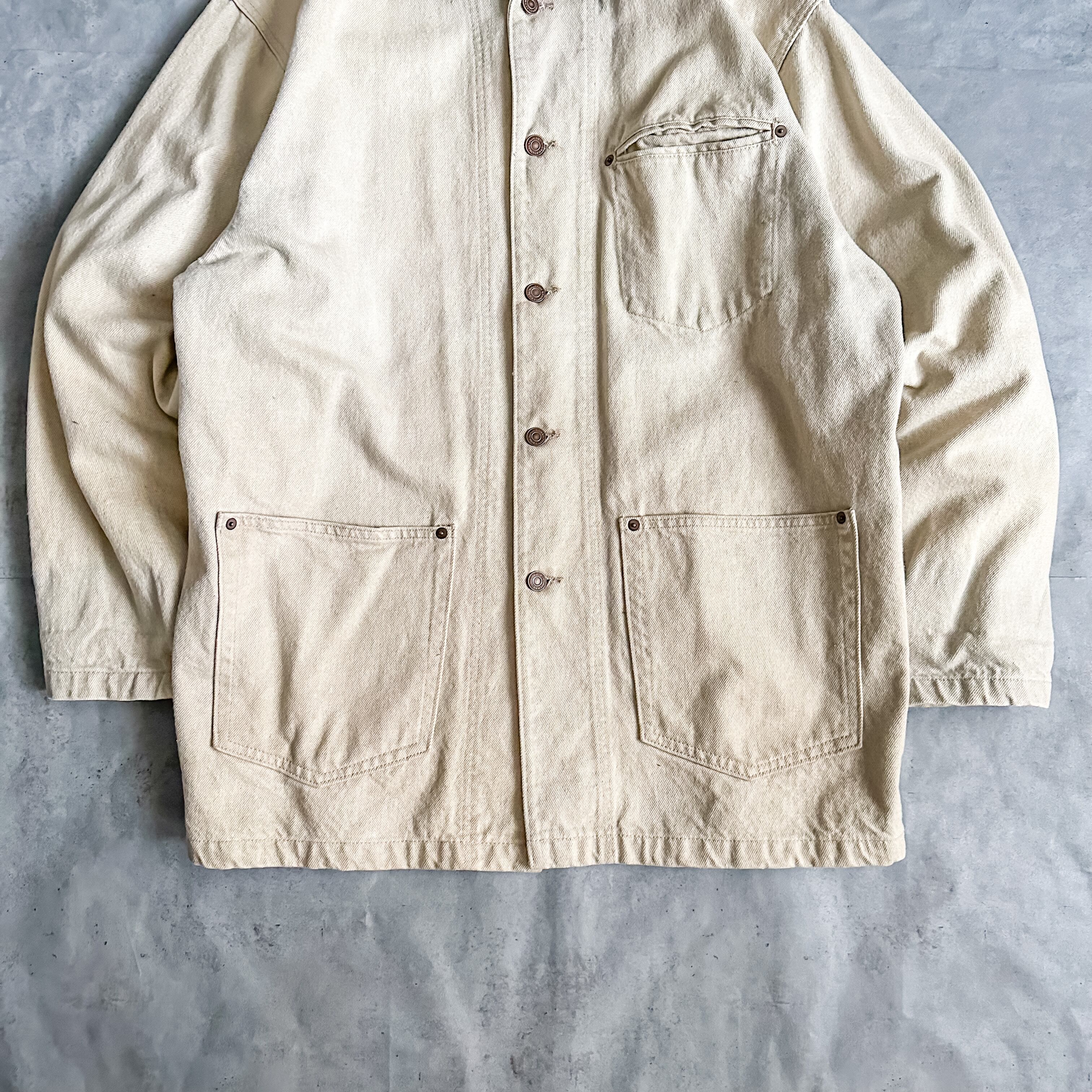 定番な3つポケのデザインに程よくゆるめなシルエット、そしてインディゴではないベージュ系のカラーデニムが使用された珍しい一着です。