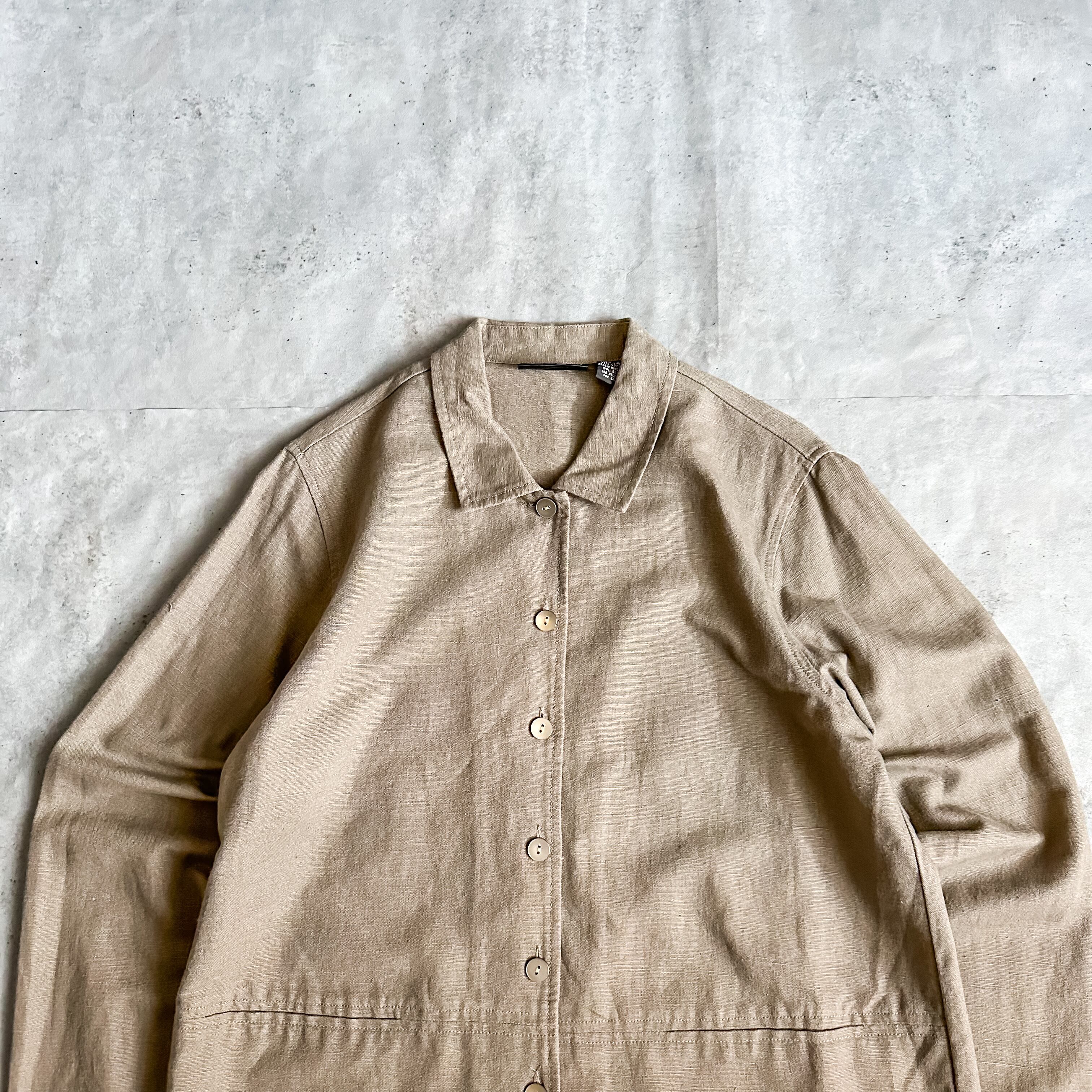 Dead stock! 1990's~ olive box silhouette linen cotton short jacket