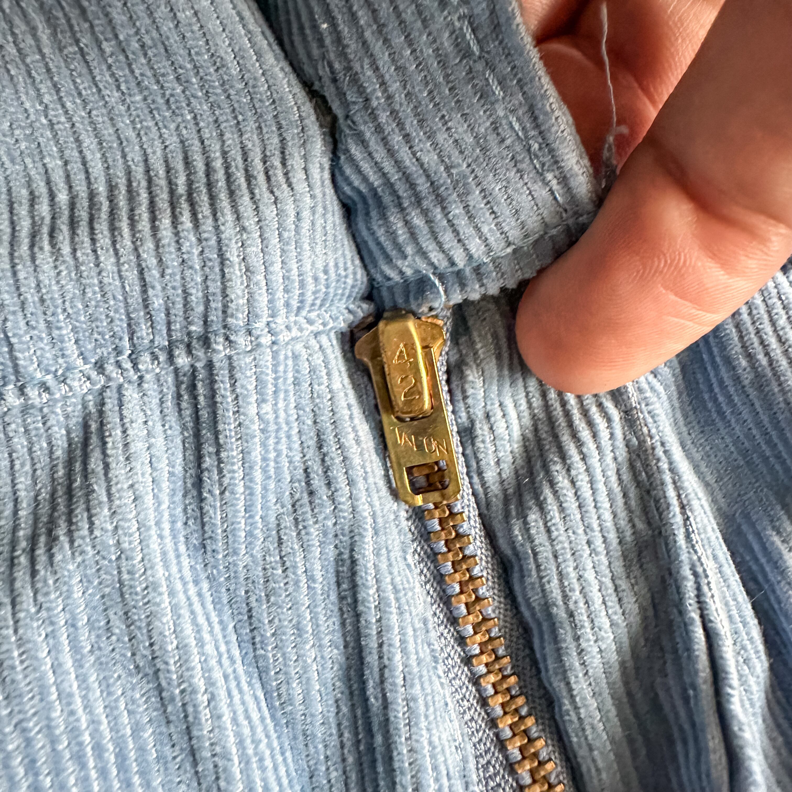 細畝のコーデュロイに、ライトブルー系のカラーリング。