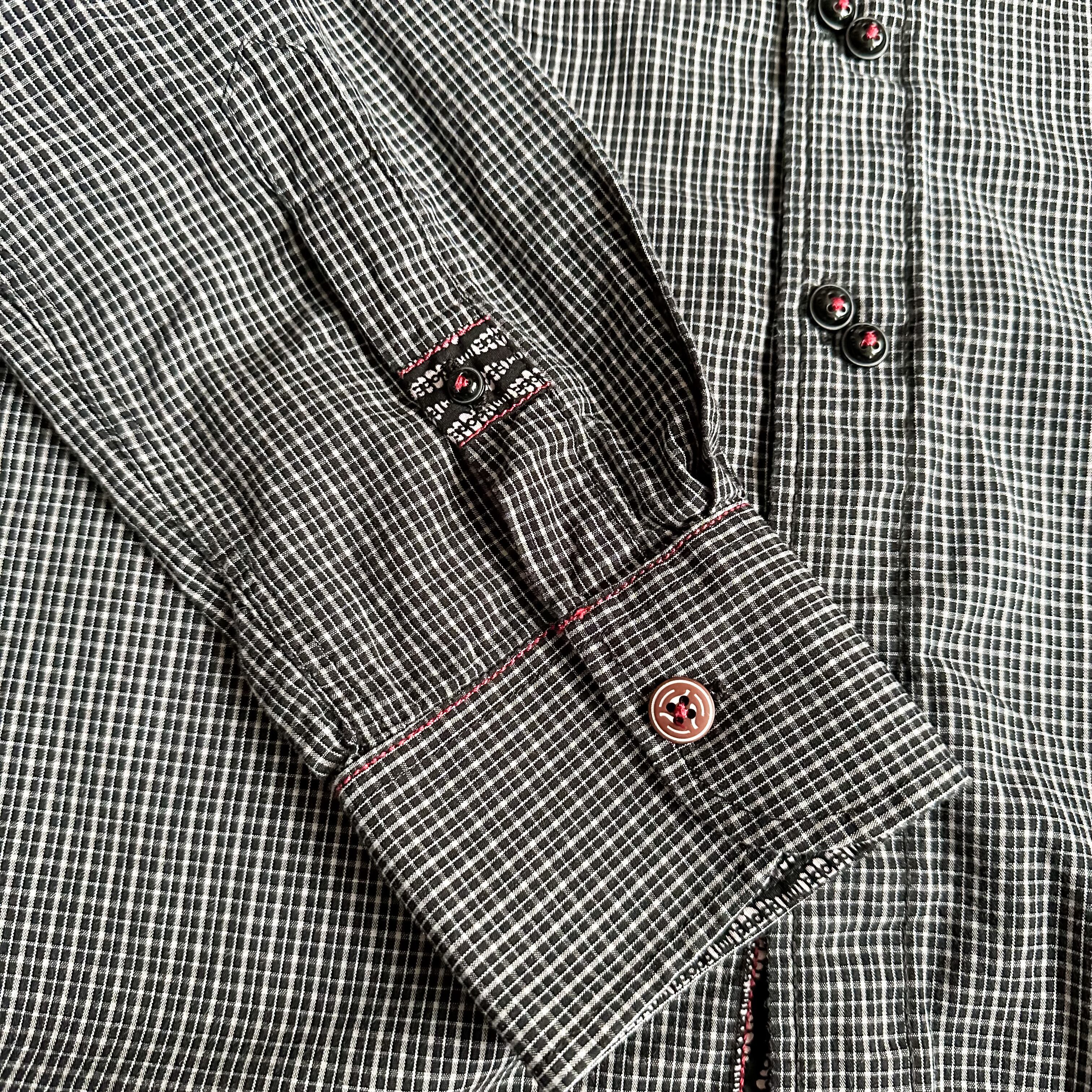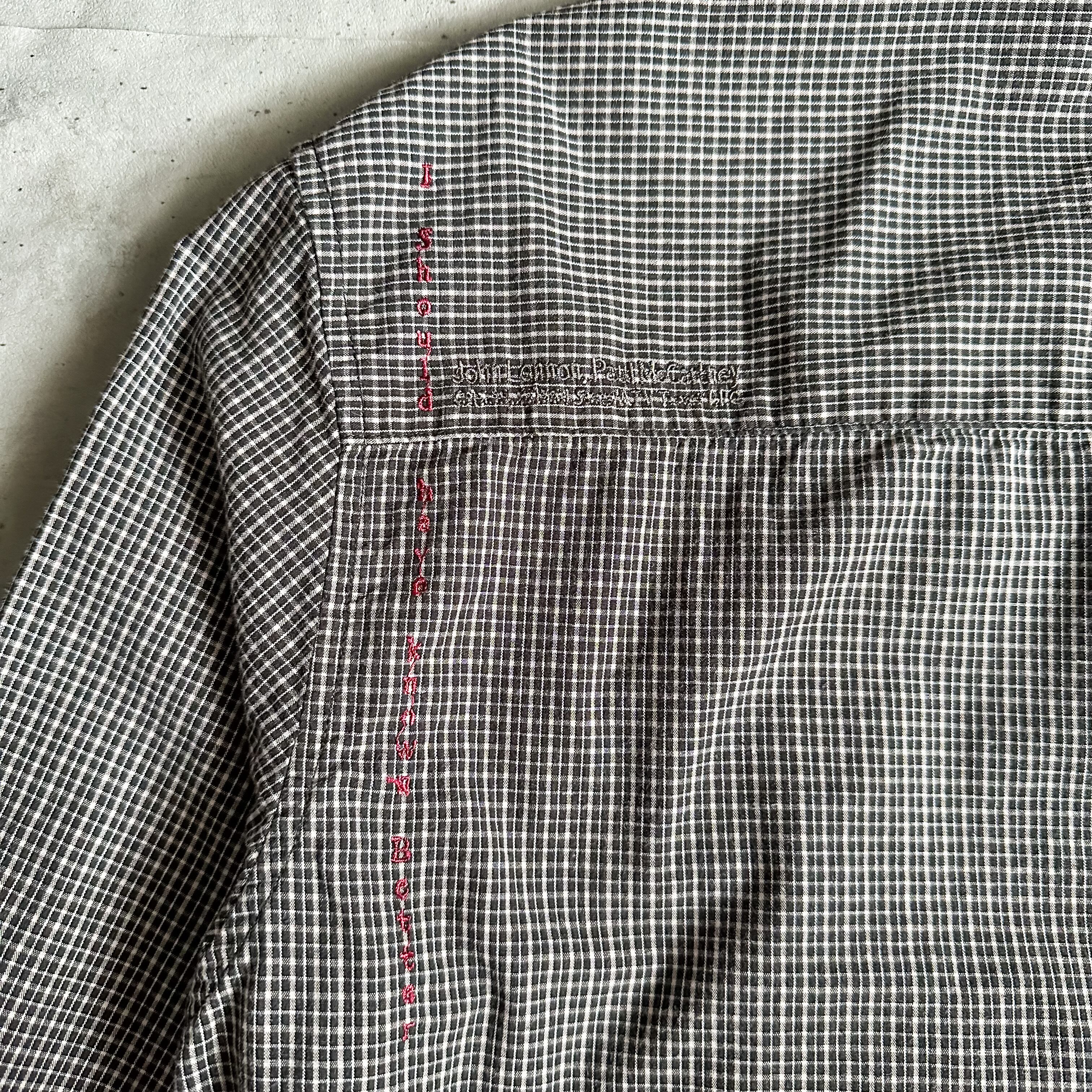 1990's "I Should have known Better" plaid pattern band collar shirt