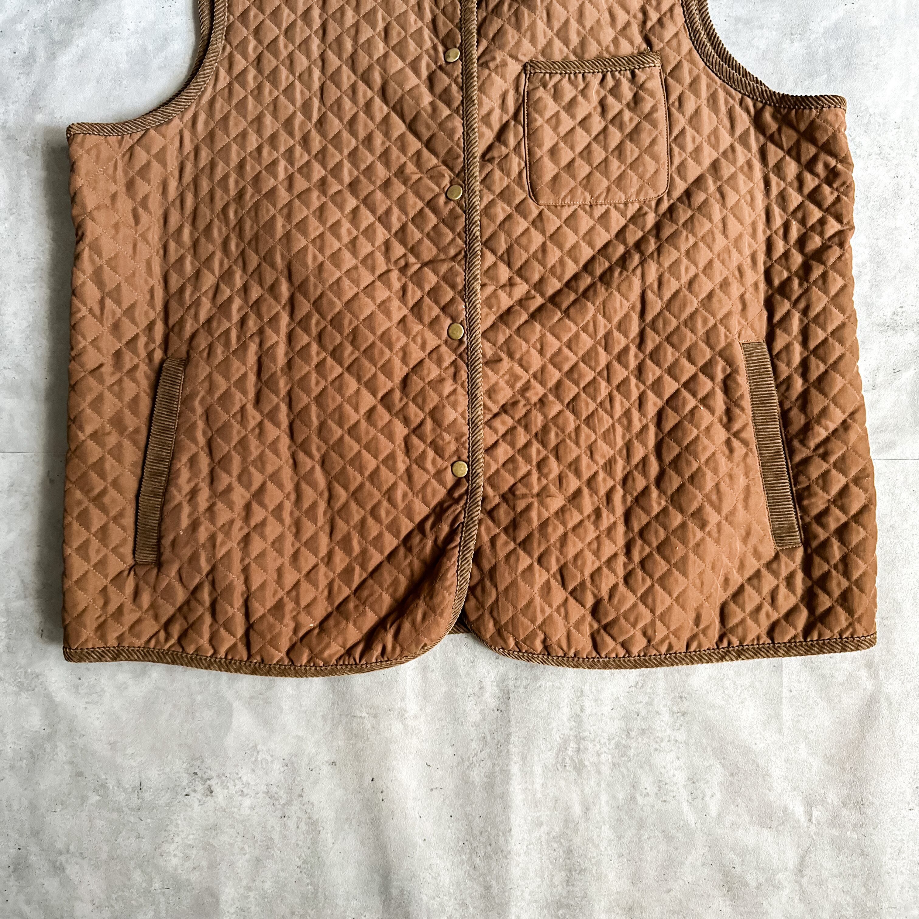 2000's brown corduroy piping quilting vest