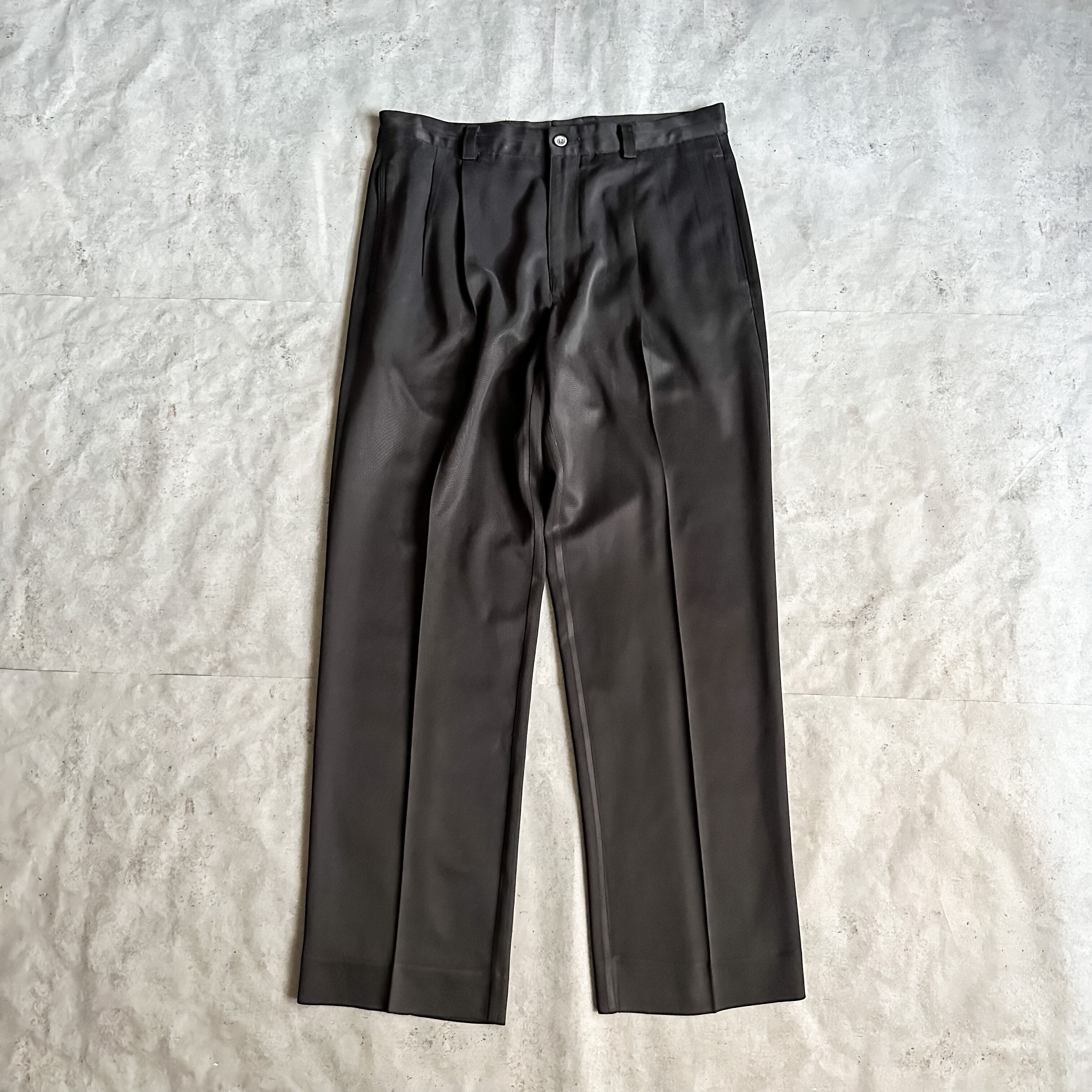 特徴 :光沢感と墨黒のような絶妙なブラックカラーが独特な表情を醸し出してくれるクールな1990's~頃のシルクスラックス。