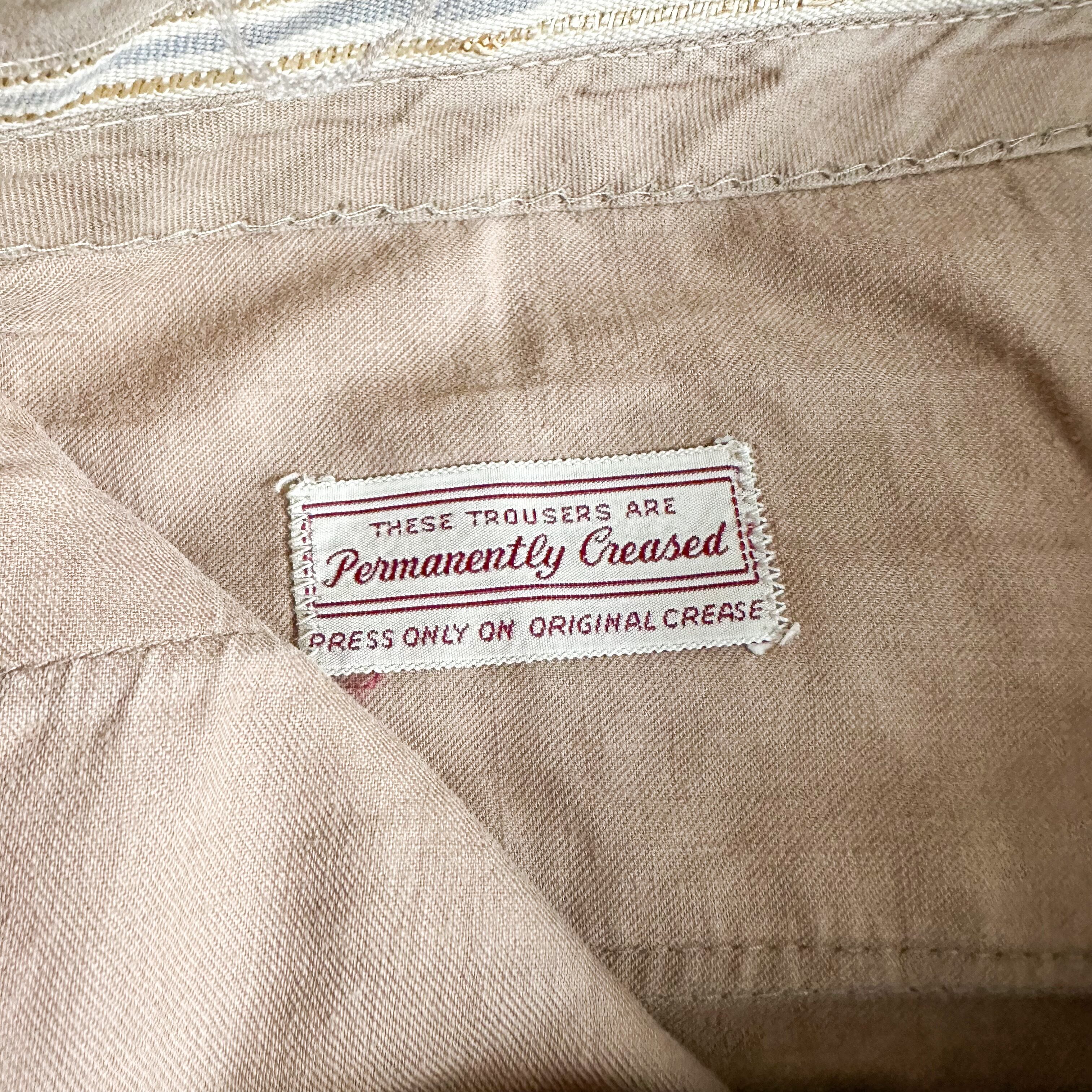 タックは入りませんが、USAFのオフィサーパンツのようなカラーリングと薄手のウールギャバジンが使用されたグッドな一本です。