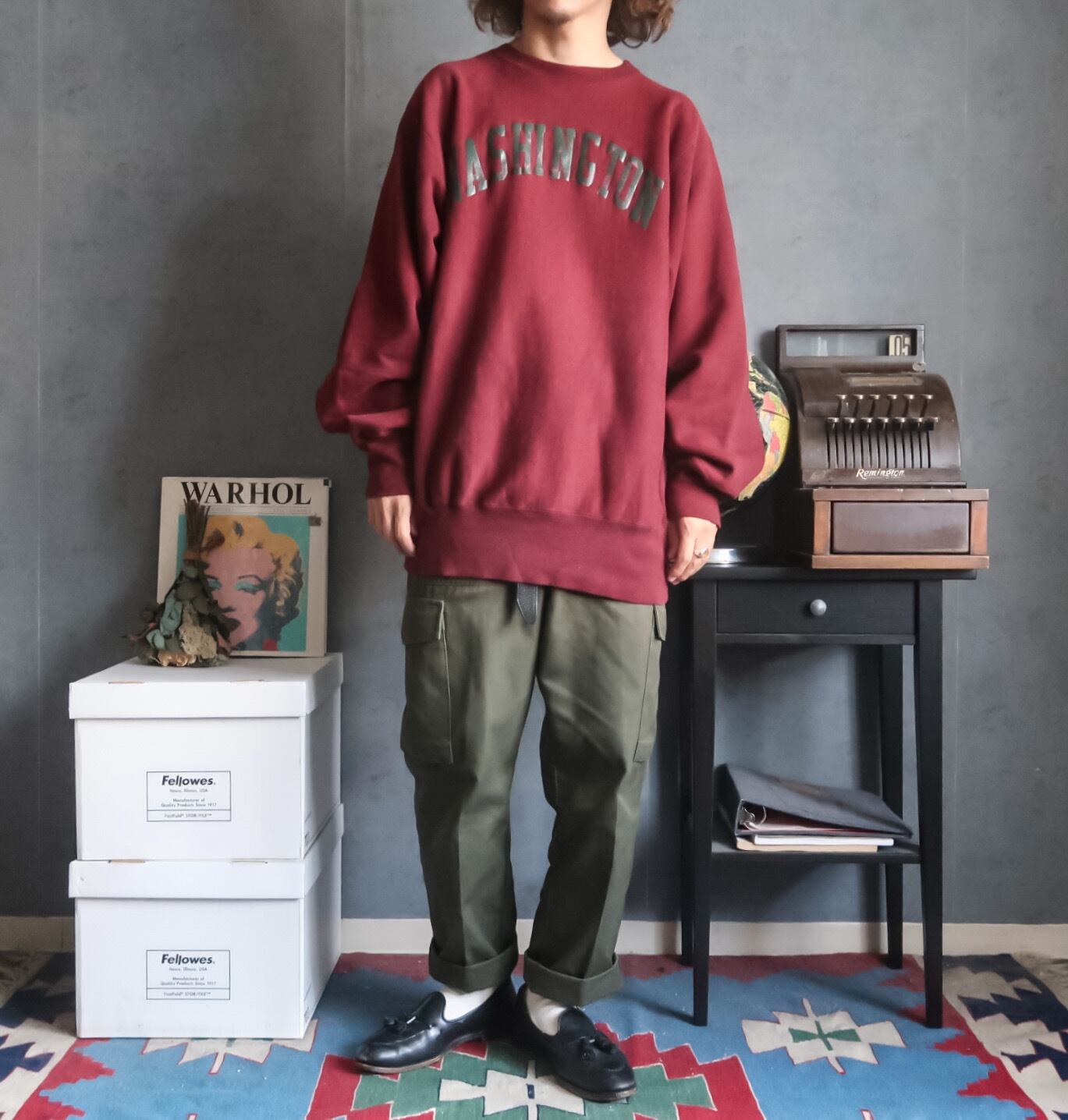 秋冬にピッタリなエンジ系のカラーリングに、グリーンの"WASHINGTON"のプリントがグッドな一枚です。