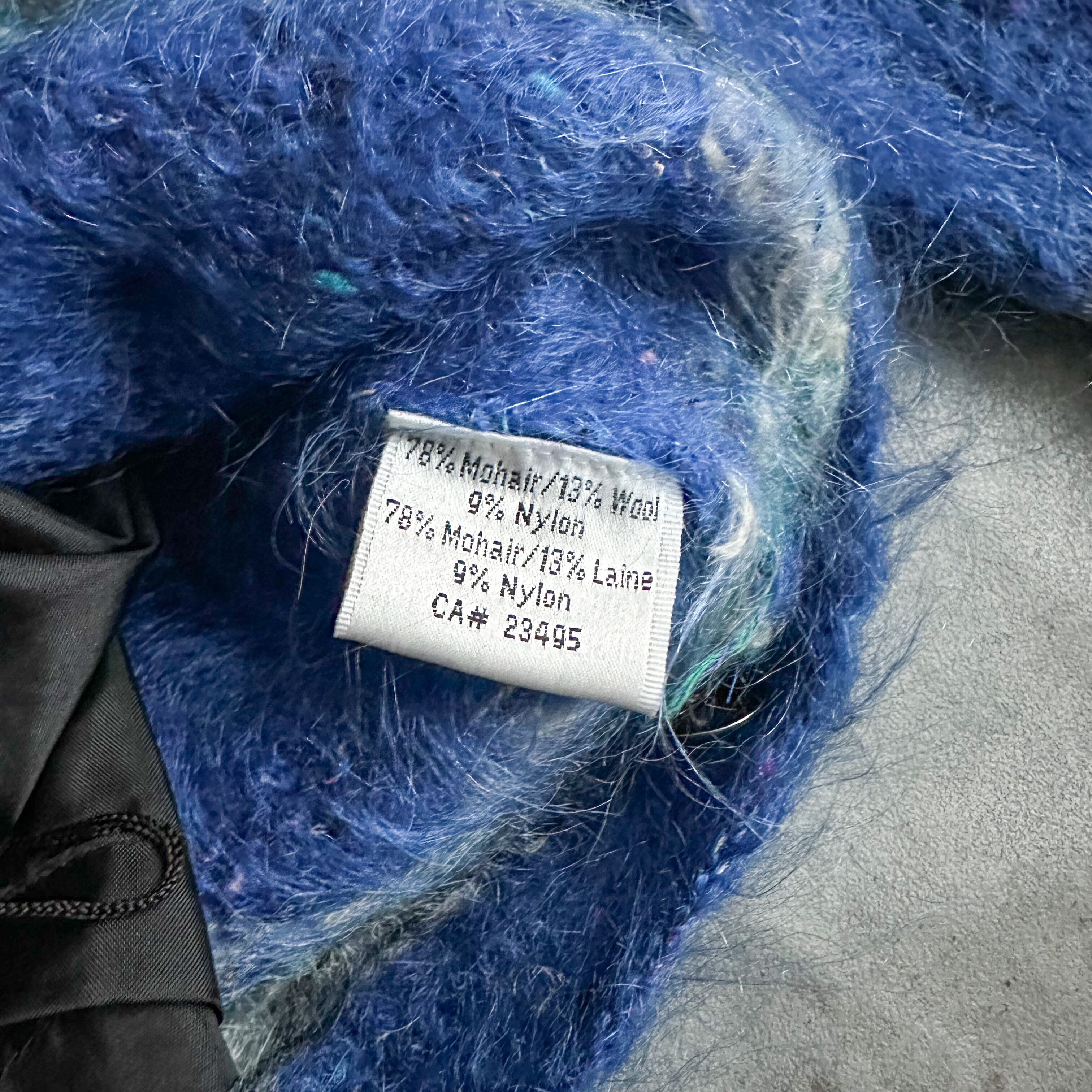 ブルー×ホワイト×ブラックの配色の良いカラーリングに、近年爆発的に人気の高いモヘアファブリック。