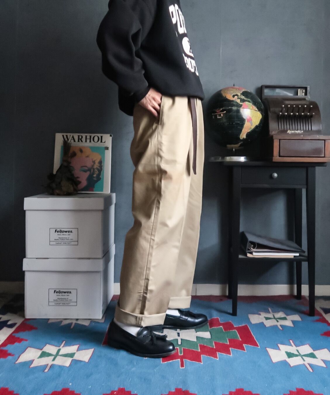 『軍チノ』という愛称で親しまれており、装飾など無駄のないシンプルなデザインにズトンと無骨なストレートシルエットが特徴の一本。