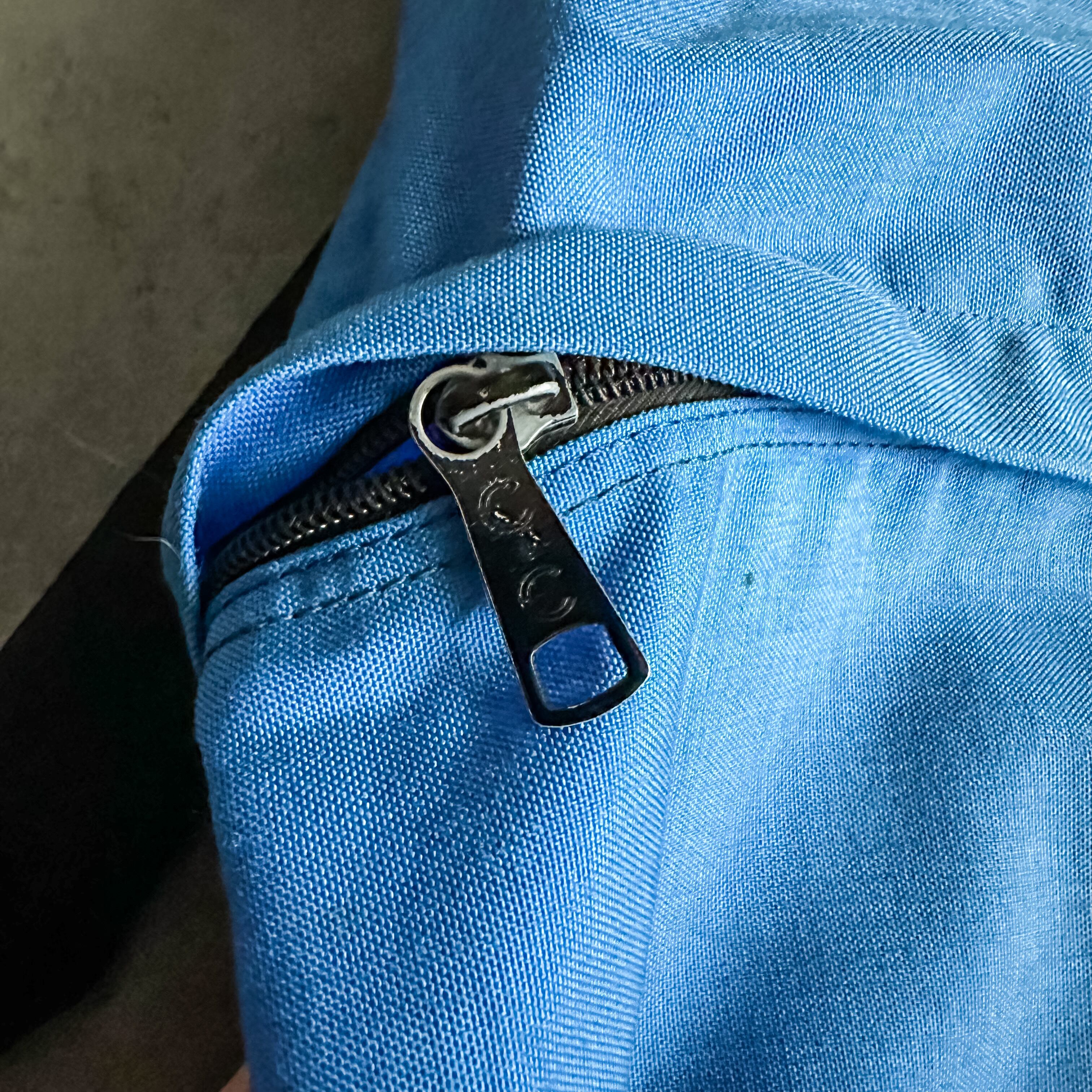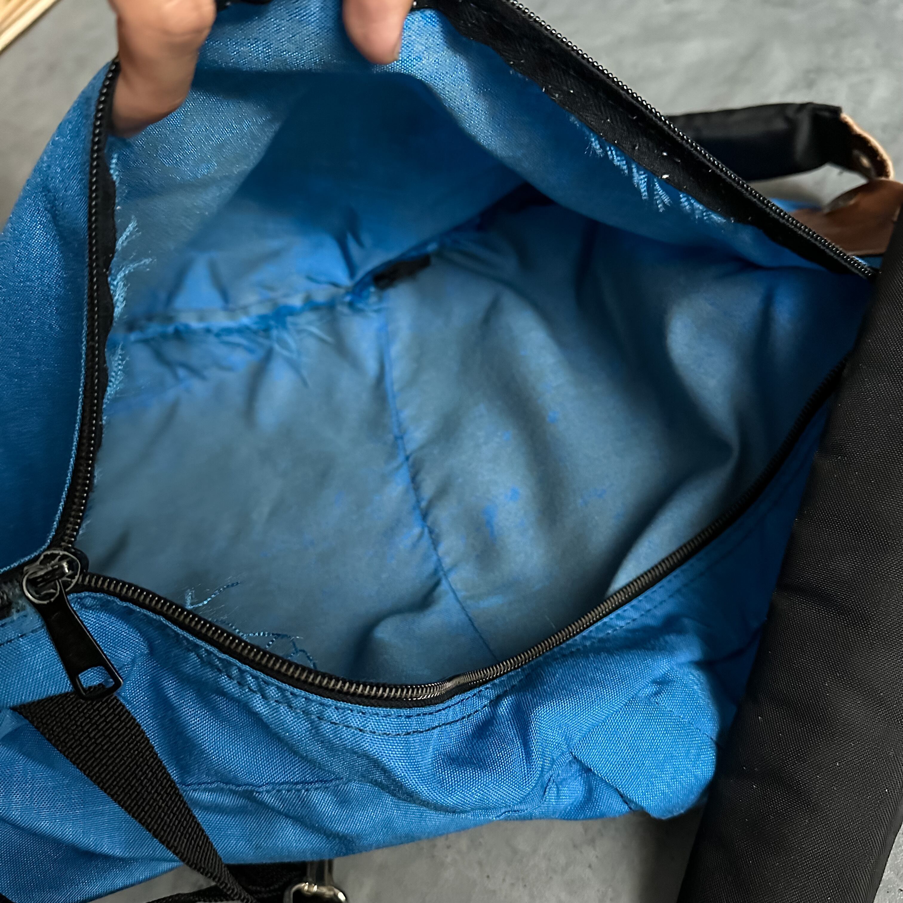 ブルーカラーのナイロンファブリックに、上下とバックに仕切りのある3気筒仕様で非常に珍しいかと。