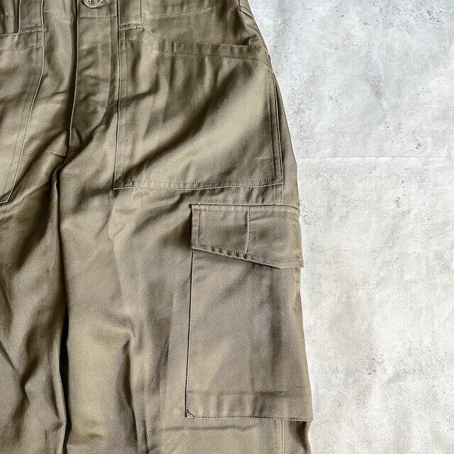 裾にかけてテーパードのかかる綺麗なシルエットと独特なデザインがファッション的に見ても非常に洒落ていて、ミリタリーらしさもありつつ、素材感やシルエットなどはデザイナーズのような一本。