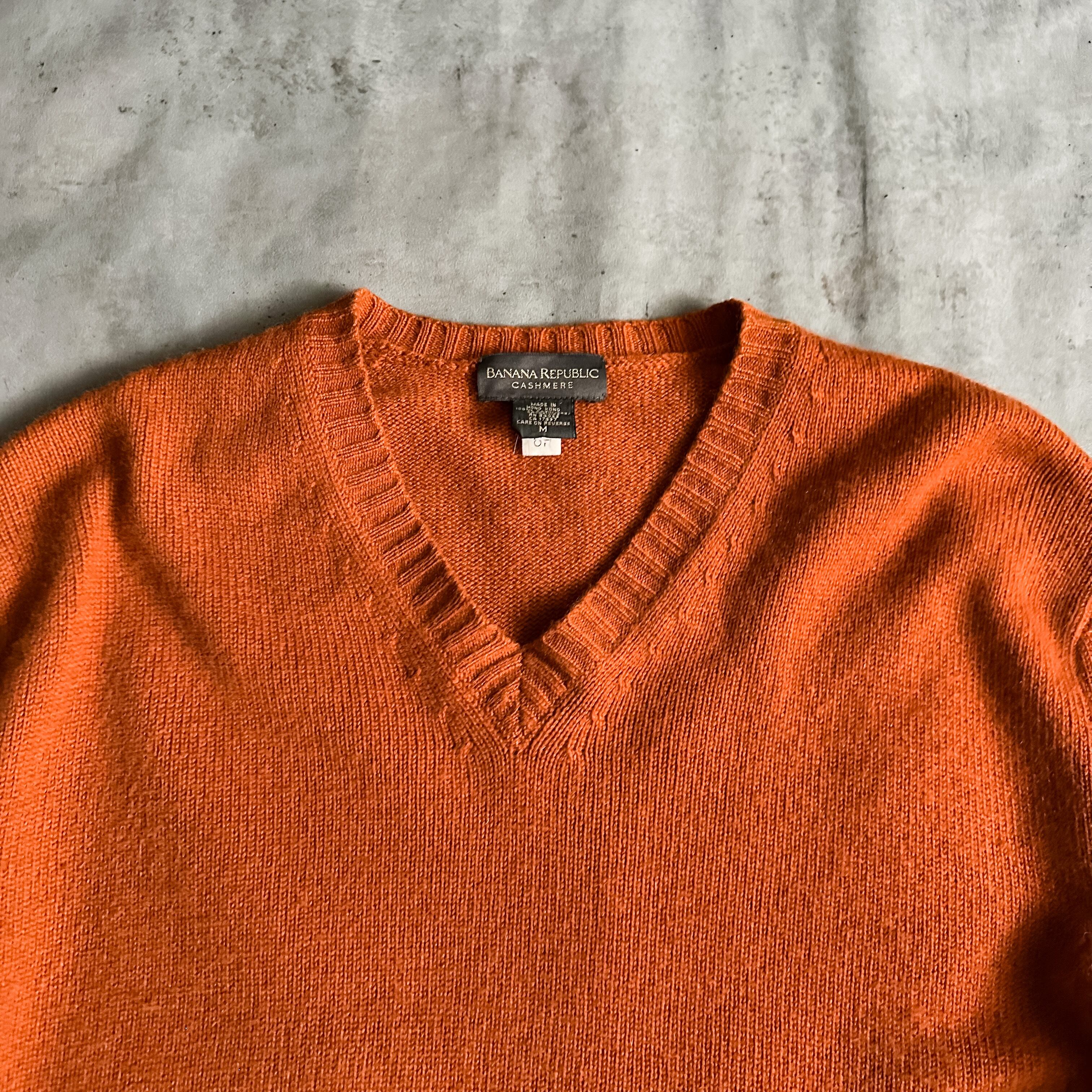 1990's "BANANA REPUBLIC" orange Vneck cashmere sweater