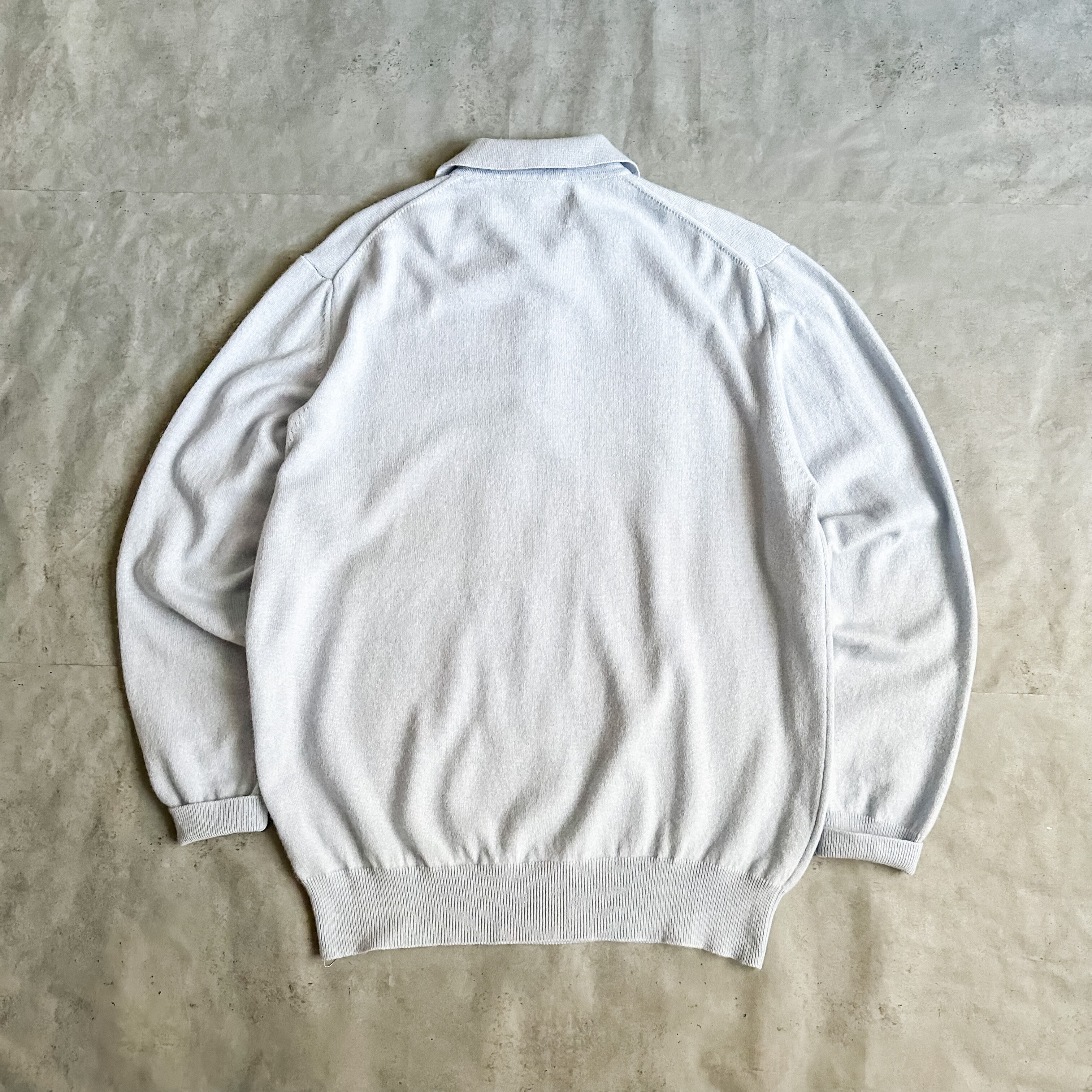 襟付きのソリッドなデザインにカシミアではあまり見かけない珍しいアイスブルーカラー。