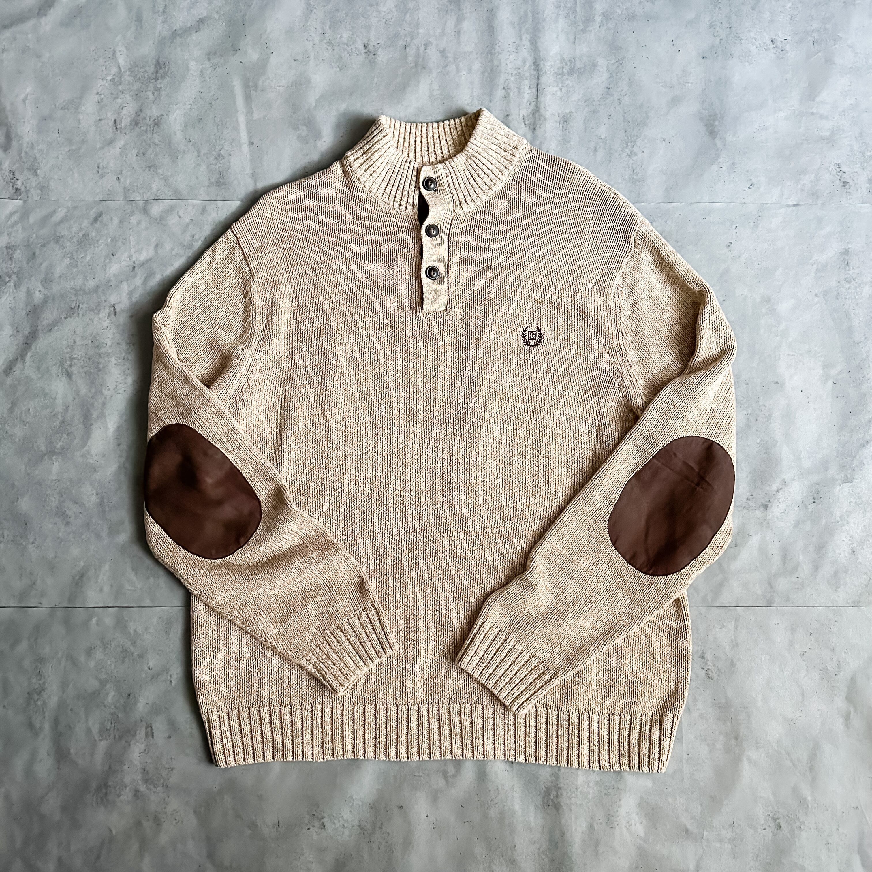 2000's~ Ralph Lauren "CHAPS" beige highneck cotton sweater with elbow patch