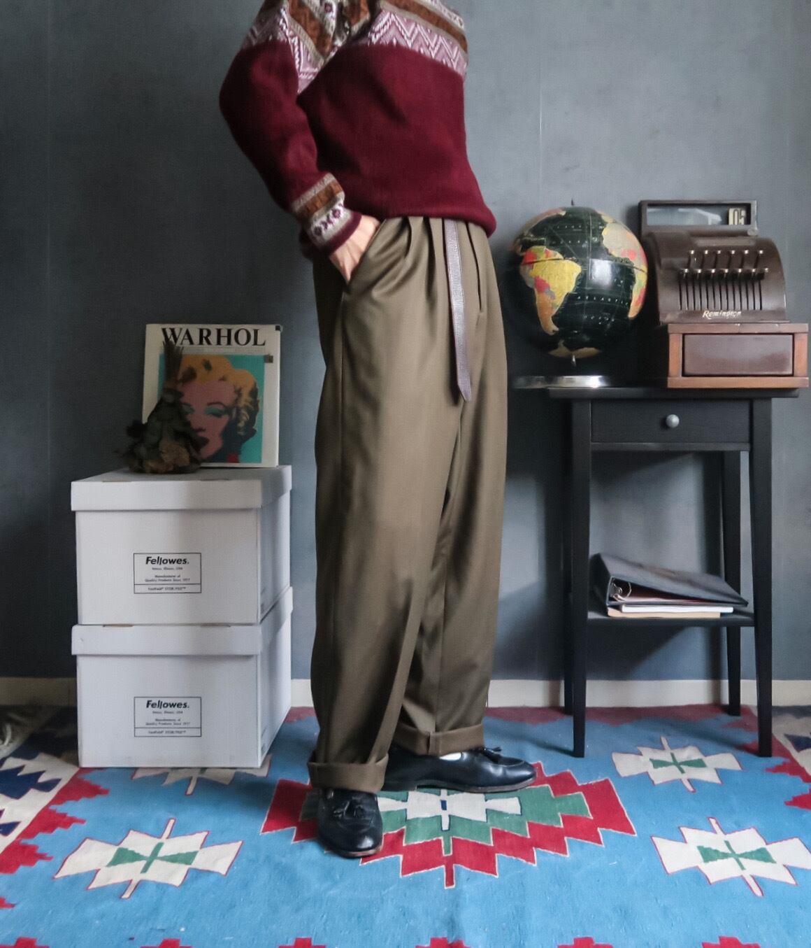 特徴 :ミリタリーのような雰囲気のオリーブ系のカラーリングのイタリア製スラックスパンツ。