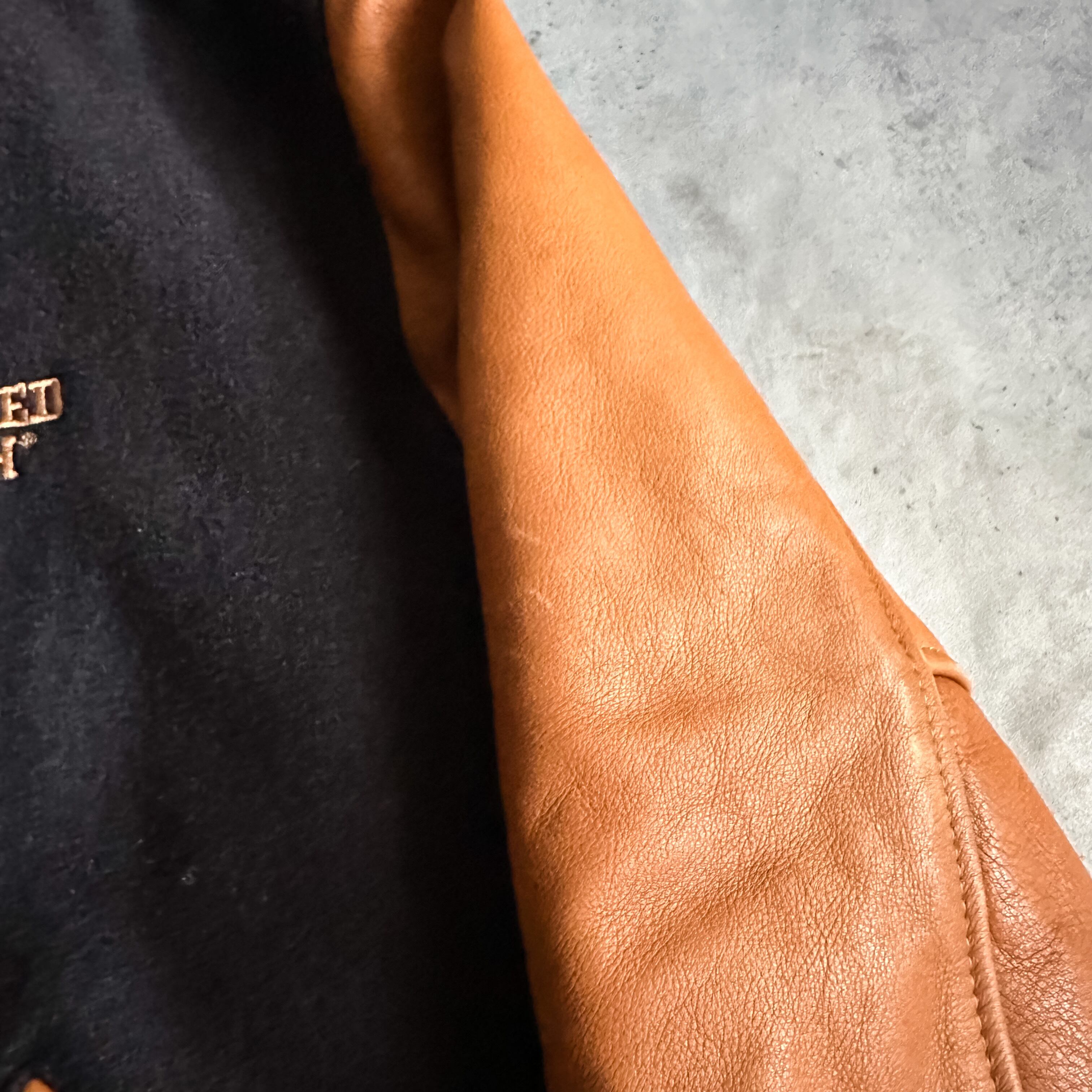 特徴 :スタジャンの中でも特に人気なウール×レザーの切り替えになった1980's~頃のスタジャン。