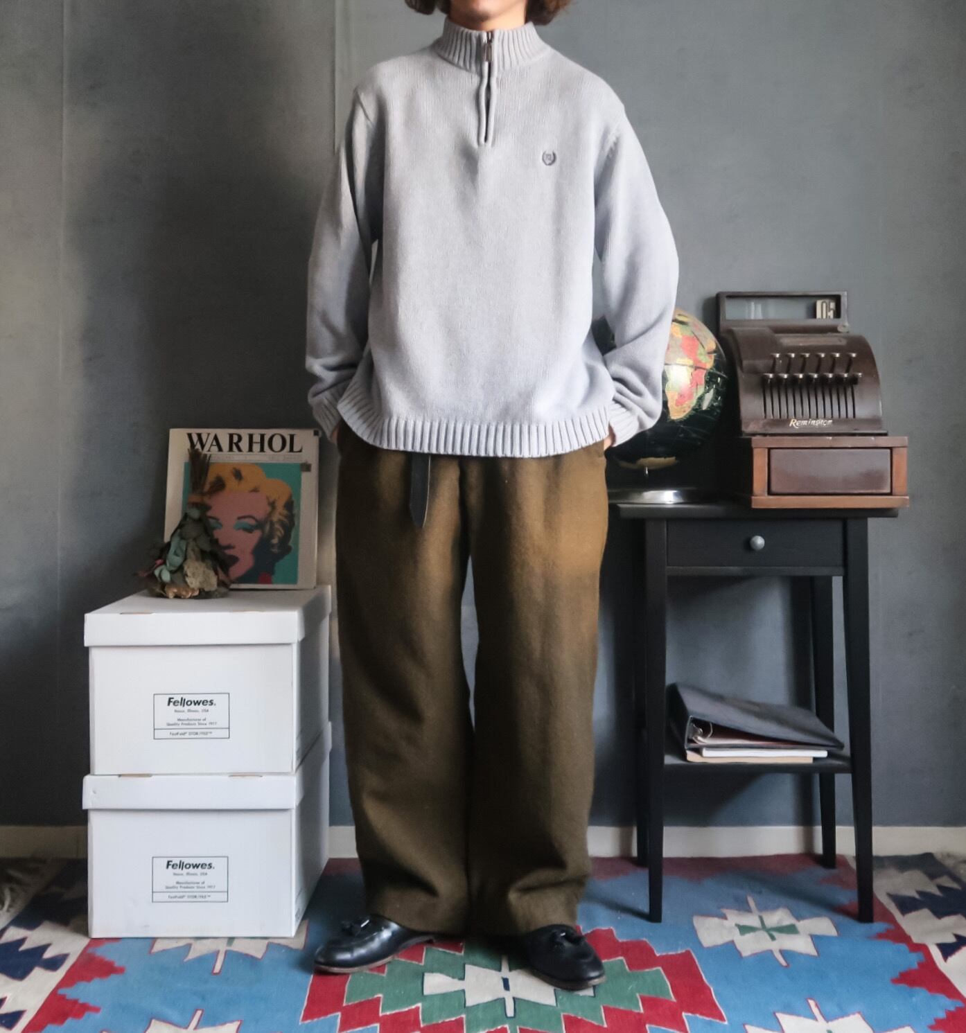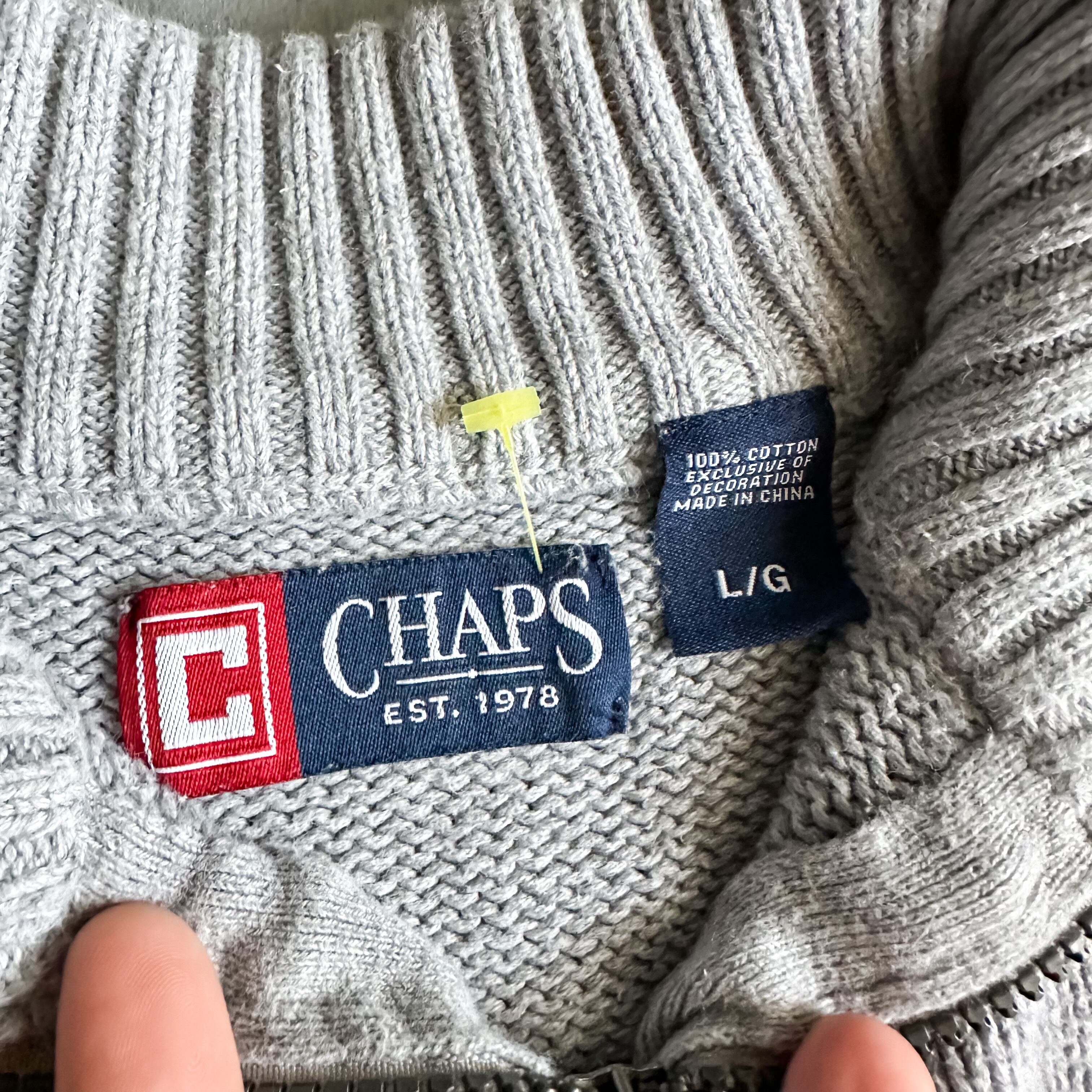 1990's~ Ralph Lauren "CHAPS" gray halfzip cotton sweater