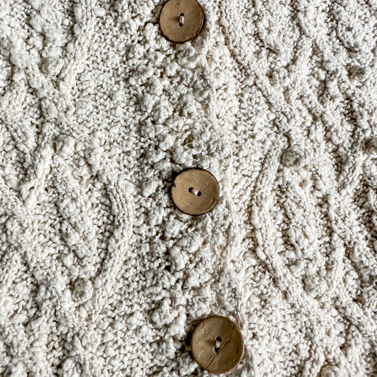 "Carraig Donn" ecru fisherman aran knit cardigan made in Ireland