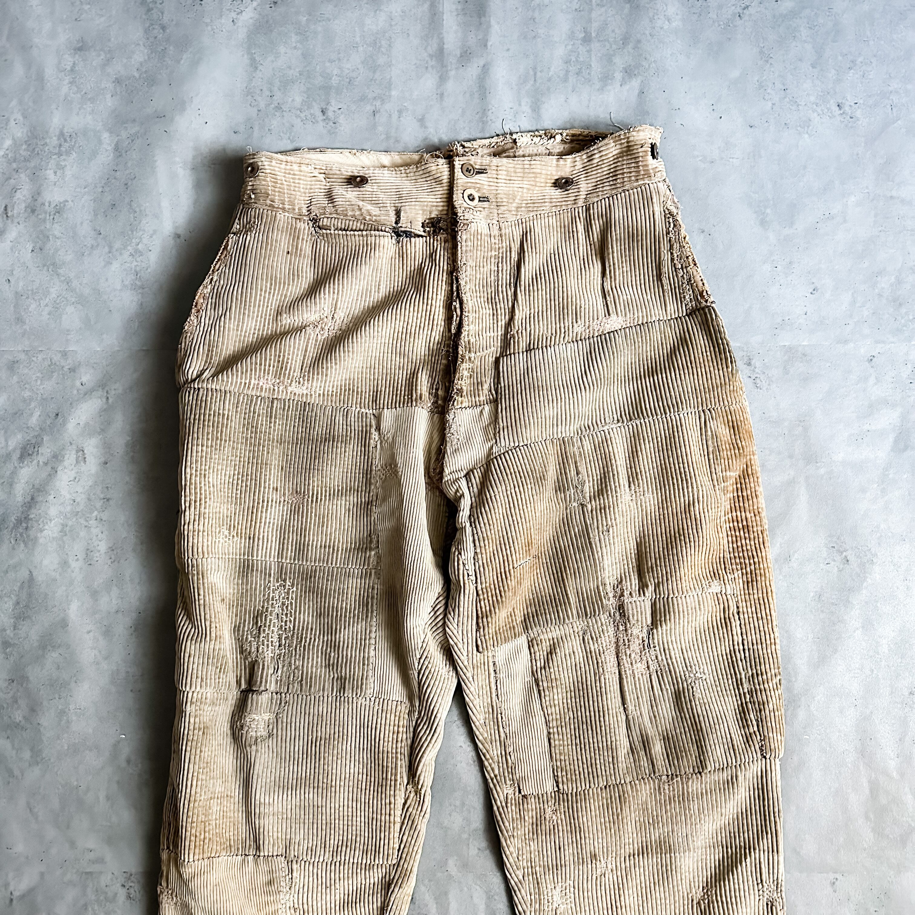 Vintage 1930's~ "VETEMENT LE MEILLEUR" patchwork heavy corduroy pants with buckle back